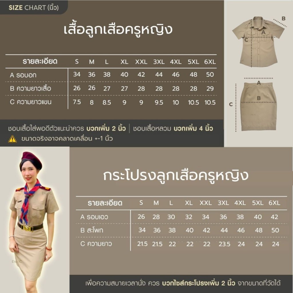 .ขนาดเสื้อให้เผื่อรอบอกจริง 2-3 นิ้ว จะใส่พอดี