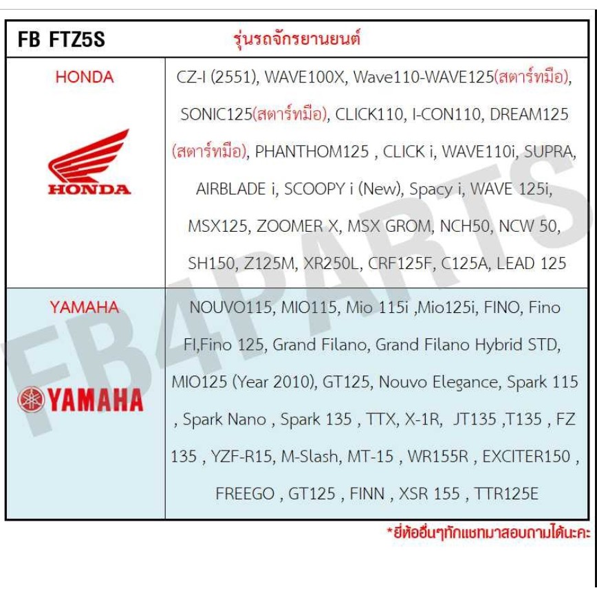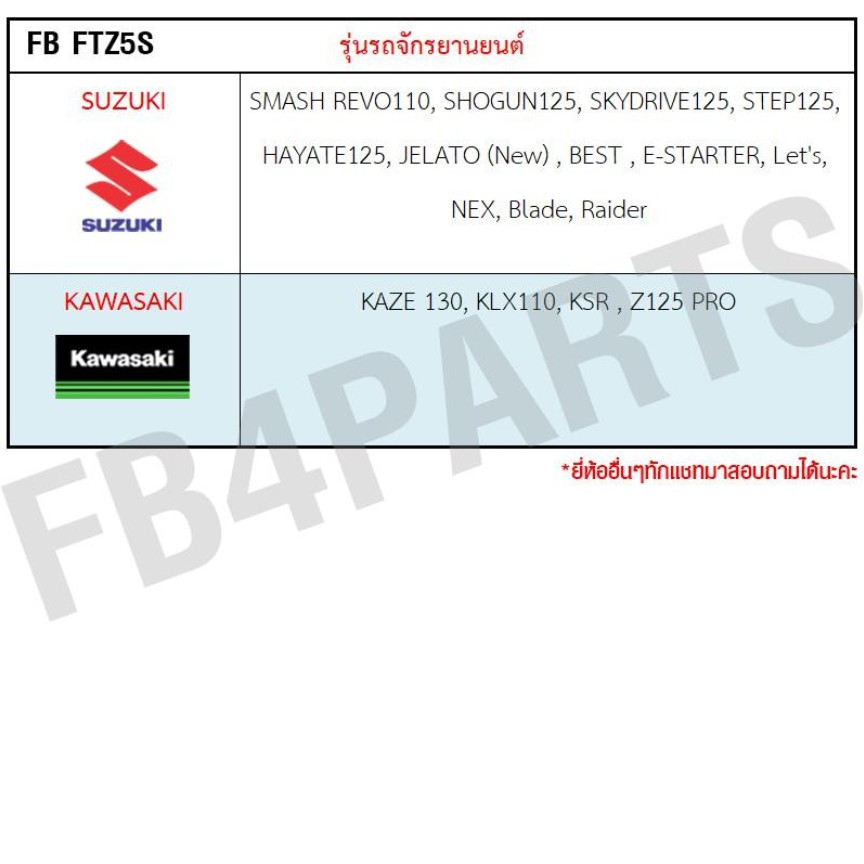 แบต FB FTZ5S รุ่น FTZ5s-mf (12V 3.5AH)ขนาด (กว้างxยาวxสูง) : 70x113x85mm