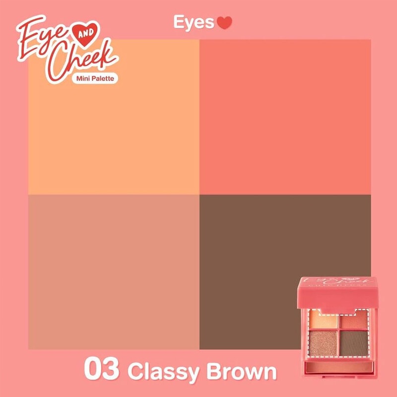 Cr. instagram.com/cute_pressCute Press Eye & Cheek Palette #03 ให้คุณสร้างลุคสวยได้ง่ายดั่งใจด้วยพาเลทอายแชโดว์พร้อมบลัชออนขนาดพกพา สีเด่นชัด ติดทนนานตลอดวัน ด้วยโทนสีน้ำตาลอิฐ มีชิมเมอร์ประกายทอง ดูเป็นสาวเรียบหรู สวยแพง แต่งง่าย เหมาะกับทุกเฉดสีผิว