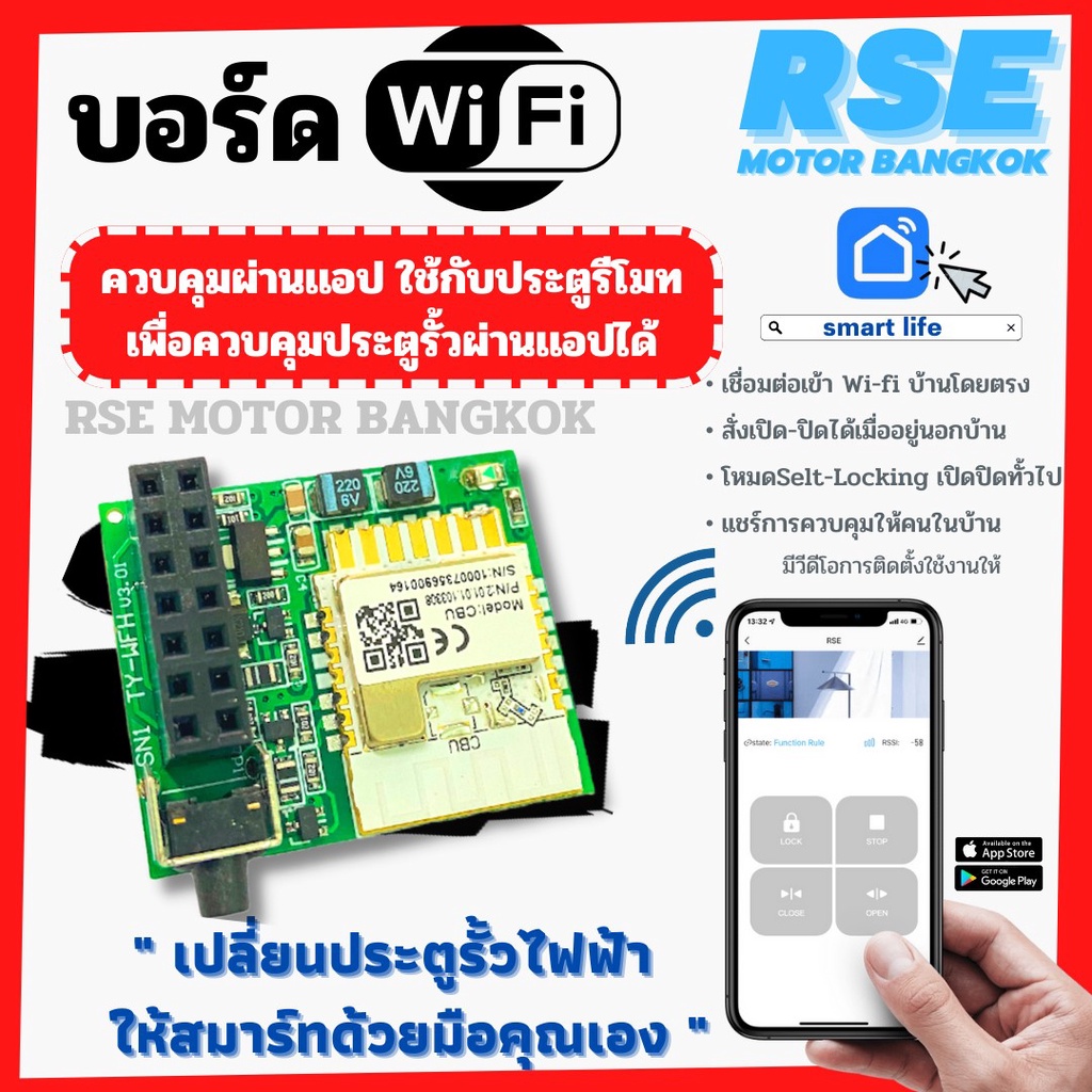 บอร์ด Wi-Fi ควบคุมผ่านเเอปใช้กับมอเตอร์ประตูรีโมท มอเตอร์ประตูเลื่อน ( เเนะนำให้สอบถามก่อนสั่งซื้อนะคะ )- เชื่อมต่อเข้า Wi-Fi บ้านโดยตรง