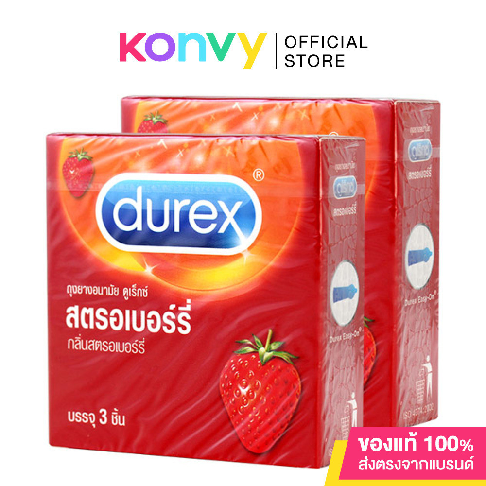 [Gói ĐÔI] bao cao su dâu Durex 52.5mm [3 cái] Bao cao su mịn 52.5mm hương vị dâu tây.