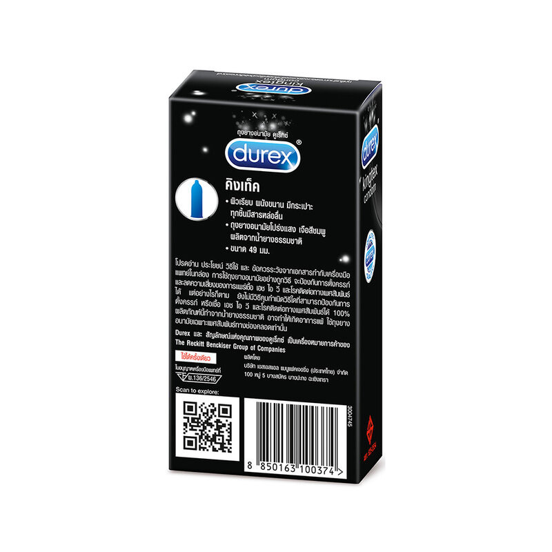Durex Kingtex Condom 49mm[12pcs]ถุงยางอนามัยชนิดผิวเรียบขนาดมาตรฐาน 49ม.ม. ผลิตจากน้ำยางธรรมชาติคุณภาพเยี่ยมเจือสีชมพู พร้อมเคลือบสารหล่อลื่นสูตรพิเศษของ Durex กระชับ สะอาด ปลอดภัย เพิ่มความมั่นใจให้ชีวิตรักแบบเต็มร้อย• ถุงยางขนาดมาตรฐาน 49 ม.ม. หนา 0.06 ม.ม.