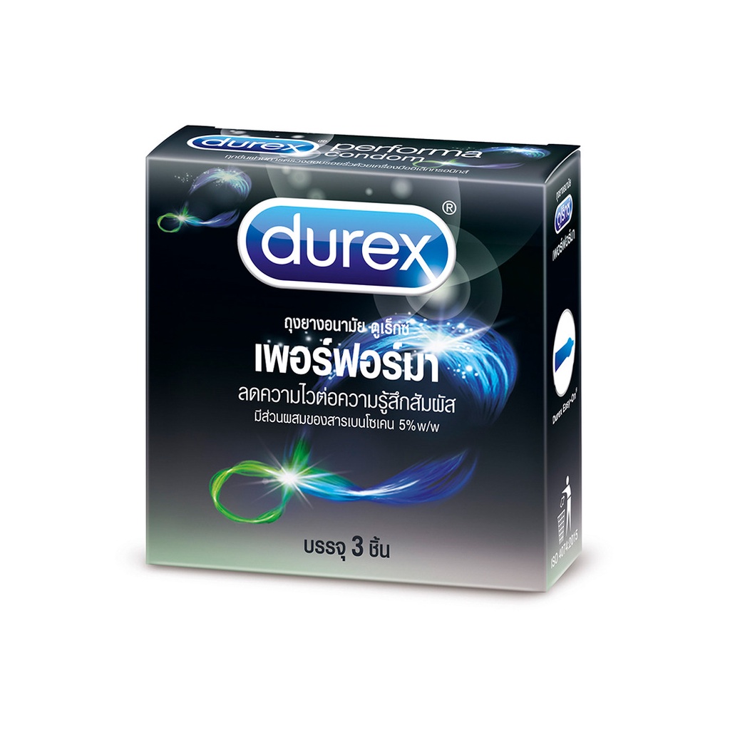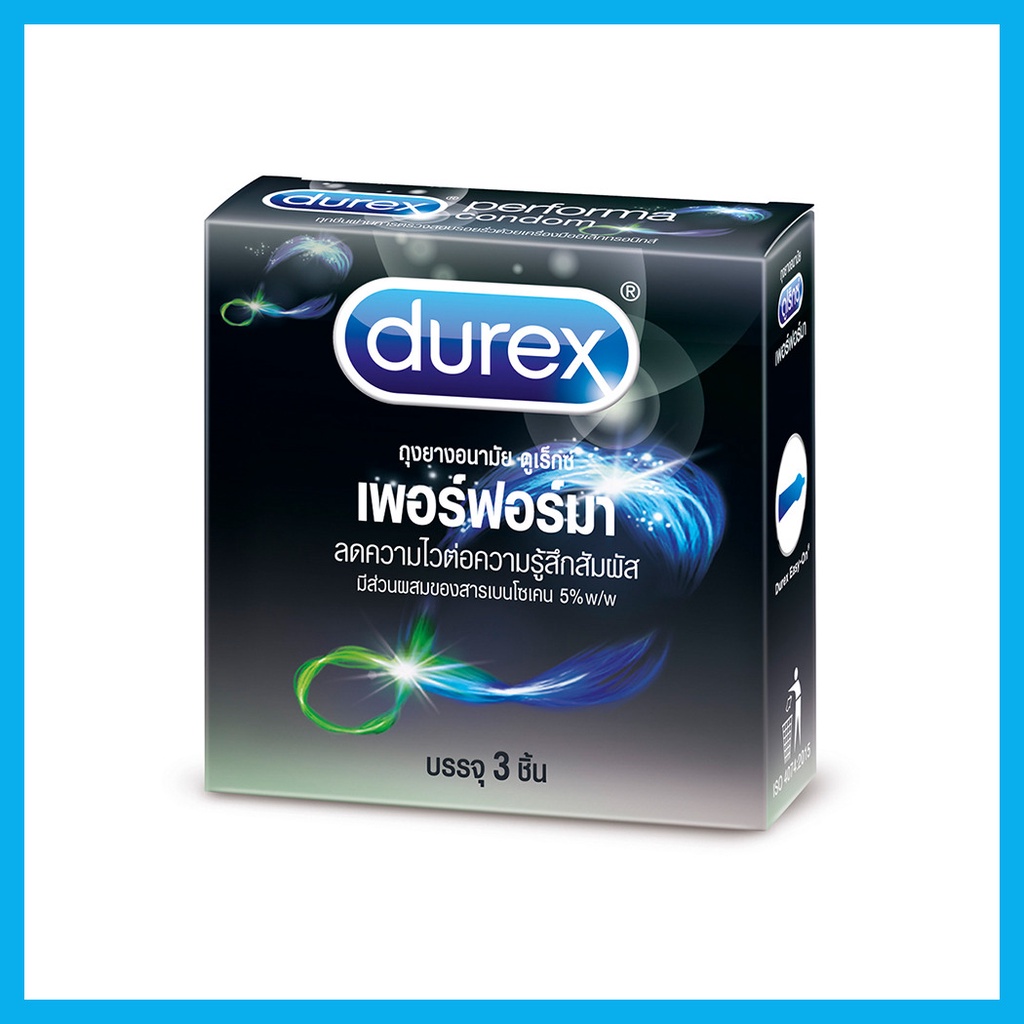 Durex Performa Condom 52.5mm[3pcs]ถุงยางอนามัยชนิดผิวเรียบขนาด 52.5ม.ม. โปร่งแสงไม่เจือสี ผลิตจากน้ำยางธรรมชาติ ยืดหยุ่น ไม่ขาดง่าย เคลือบสารหล่อลื่นมาตรฐาน Durex พร้อมต่อเวลาให้เกมรักยาวนานถึงใจ ด้วยสารชะลอการหลั่ง เอาใจสายอึดโดยเฉพาะ• ถุงยางขนาด 52.5ม.ม. โปร่งแสงไม่เจือสี