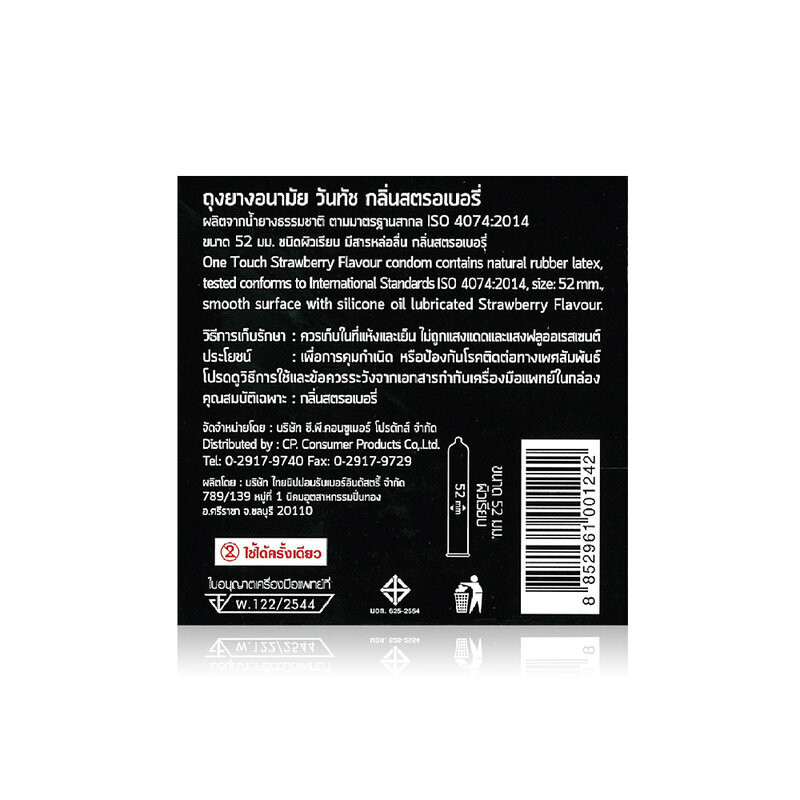 Cr.facebook.com/OnetouchthailandOnetouch Condom Strawberry 52mm [3pcs] ให้คุณมีช่วงเวลาดีๆ ด้วยกลิ่นหอมกับถุงยางอนามัย ขนาด 52มม. กลิ่นสรอเบอร์รี่ 3 ชิ้น ผิวเรียบ ผนังขนาน มีกระเปาะ ใส่สารหล่อลื่นมากกว่า 550mg. ผลิตจากน้ำยางธรรมชาติ