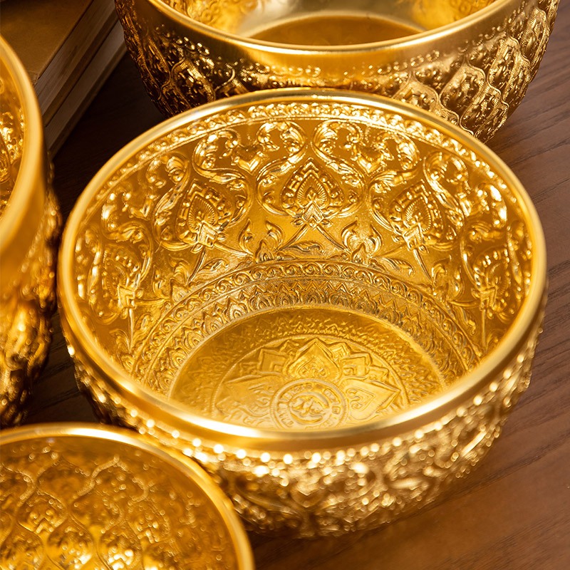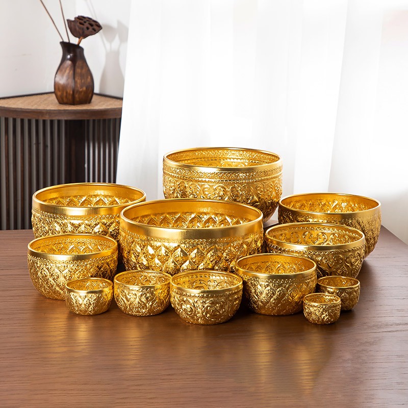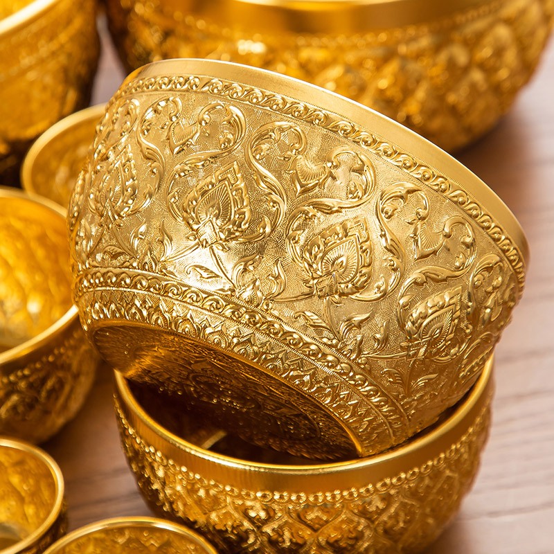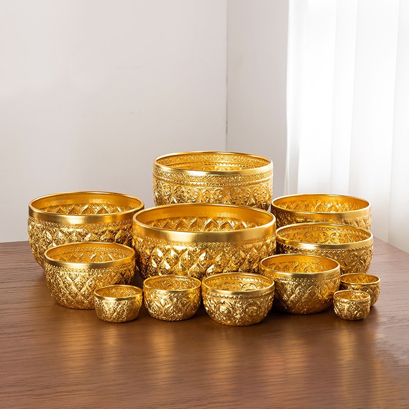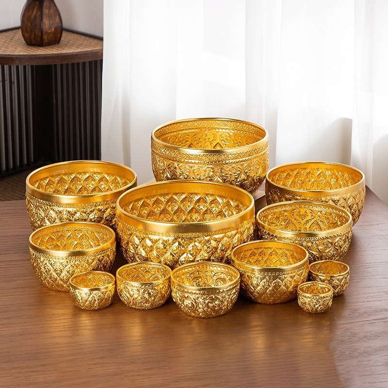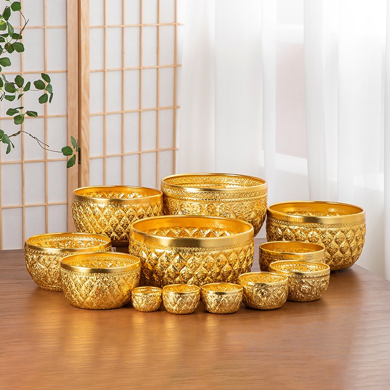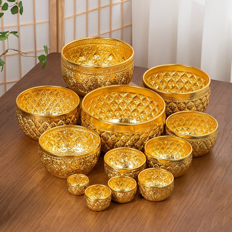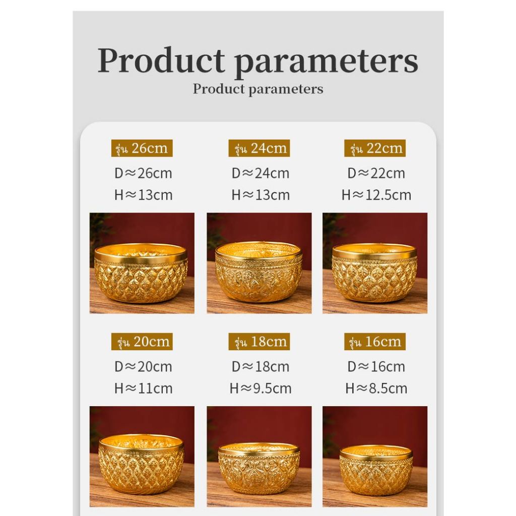 ชื่อ:ชามดีบุกขันน้ำ ลายตะวัน6 8 10 12 14 16 18 20 22 24 26ซม. (ทอง) ขันเงิน ขันทอง อลูมิเนียม คุณภาพดี สีไม่ลอก ไม่ดำ 100% ให