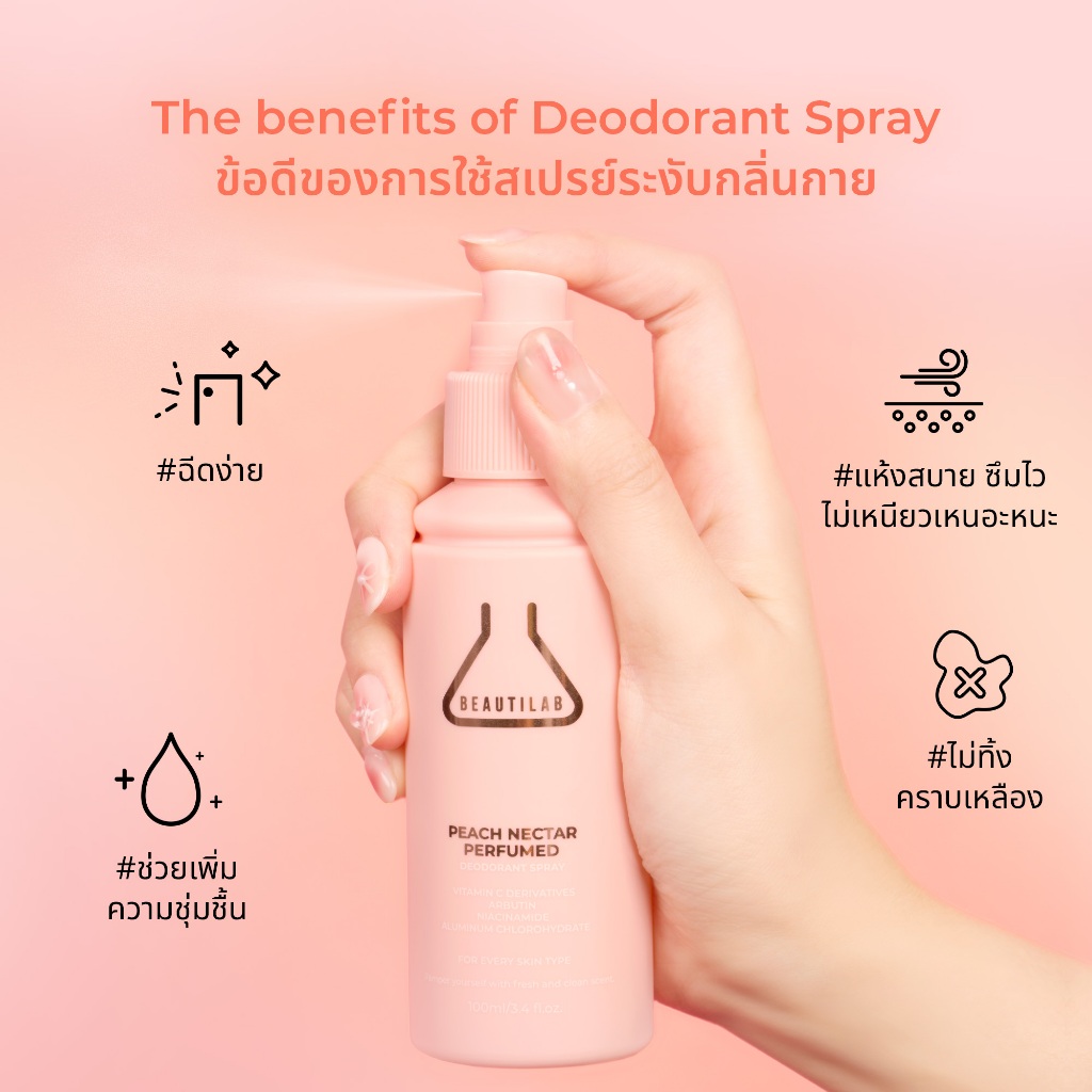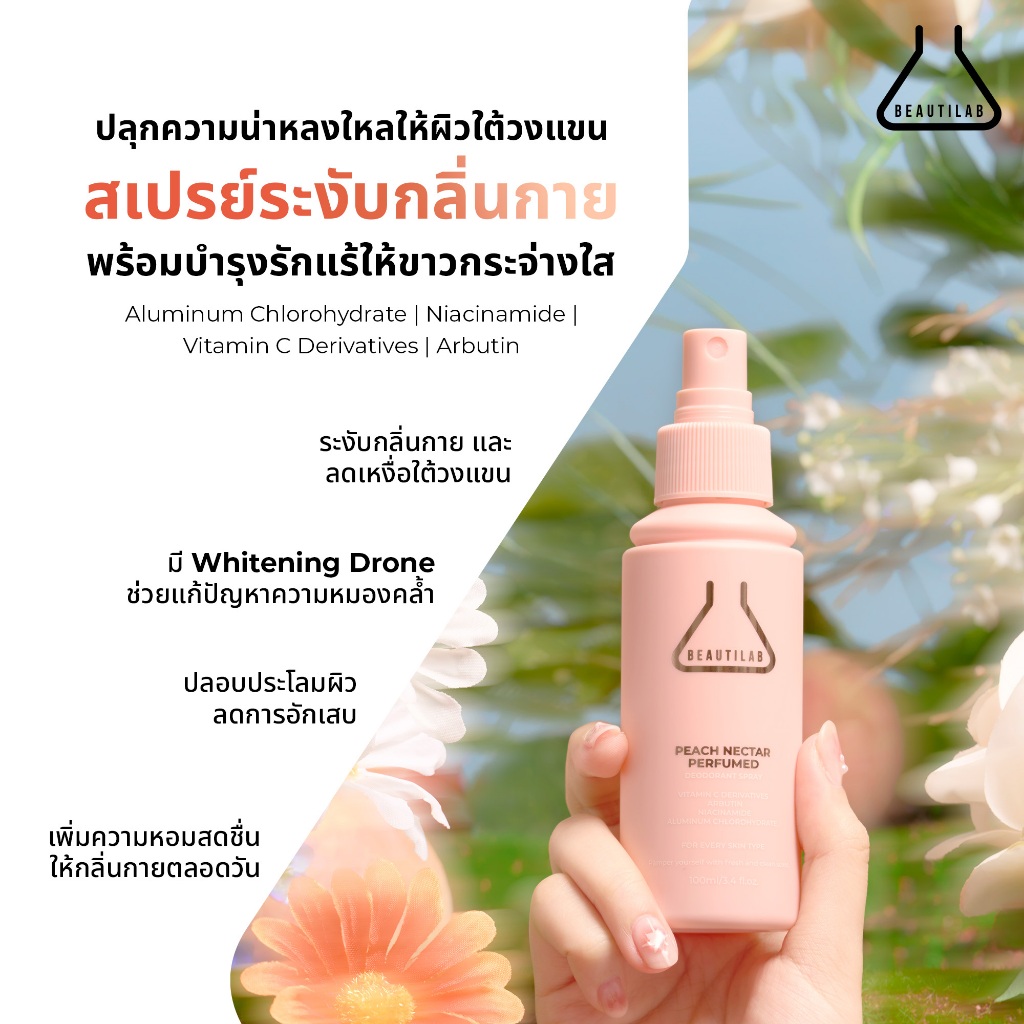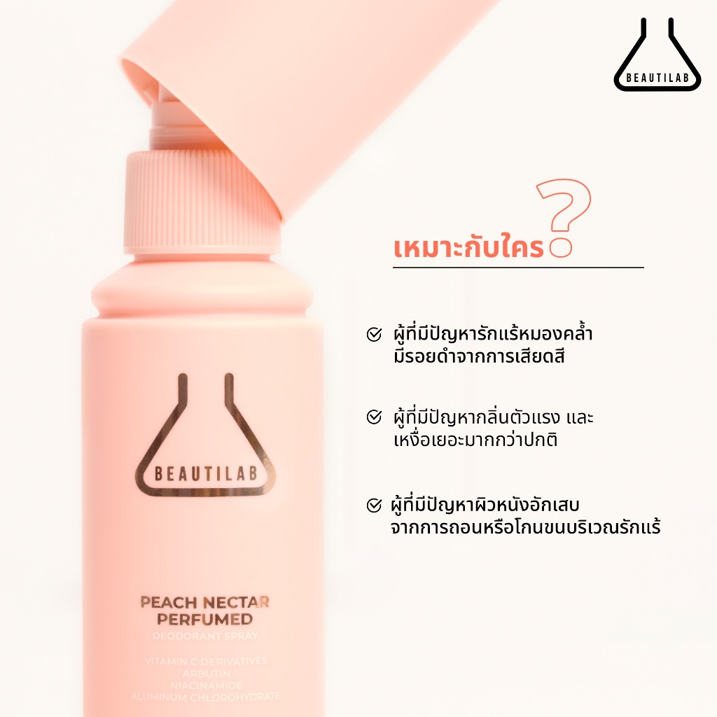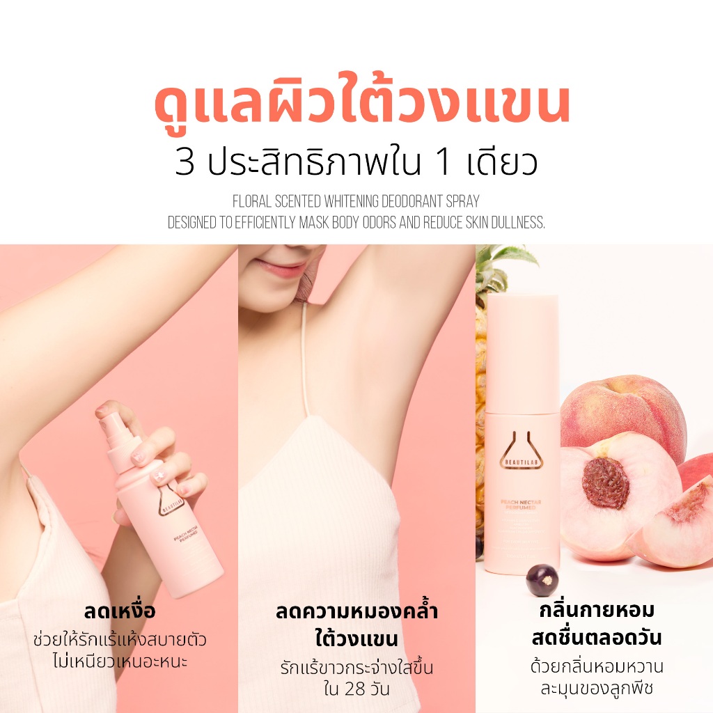 BEAUTILAB PEACH NECTAR Perfumed deodorant Sprayบอกลาความหมองคล้ำใต้วงแขน รักแร้ขาว..กลิ่นกายหอมสดชื่น
