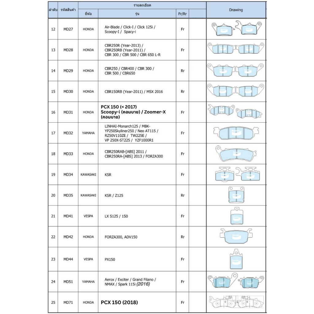- ใช้สำหรับทดแทนผ้าเบรกเดิมที่เสื่อมสภาพ