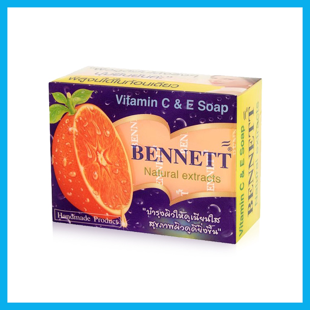 Bennett Natural Extracts Vitamin C&E Soap 130g สบู่สมุนไพรจากธรรมชาติ คิดค้นสูตรและควบคุมการผลิต โดยนักวิทยาศาสตร์ด้านเวชสำอาง รู้สึกได้ทันทีว่าผิวเกลี้ยงเกลา นุ่มนวลยิ่งขึ้น ด้วยความมหัศจรรย์แห่งการบำรุงของวิตามินอี และวิตามินซี ผสมอย่างลงตัวกับสารสกัดจากธรรมชาติ จึงทำให้ผิวผุดผ่อง เนียน สวยขึ้น พร้อมปกป้องผิวจากสิว ฝ้า ผด และระงับกลิ่นตัว• ช่วยชำระล้างสิ่งสกปรกได้หมดจด
