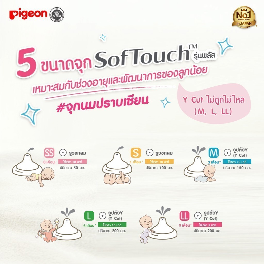 วิธีการเลือกขนาดจุกนม Pigeon พีเจ้น จุกนมเสมือนนมมารดา ซอฟท์ทัช รุ่นพลัส (สำหรับขวดทรงคอกว้าง)