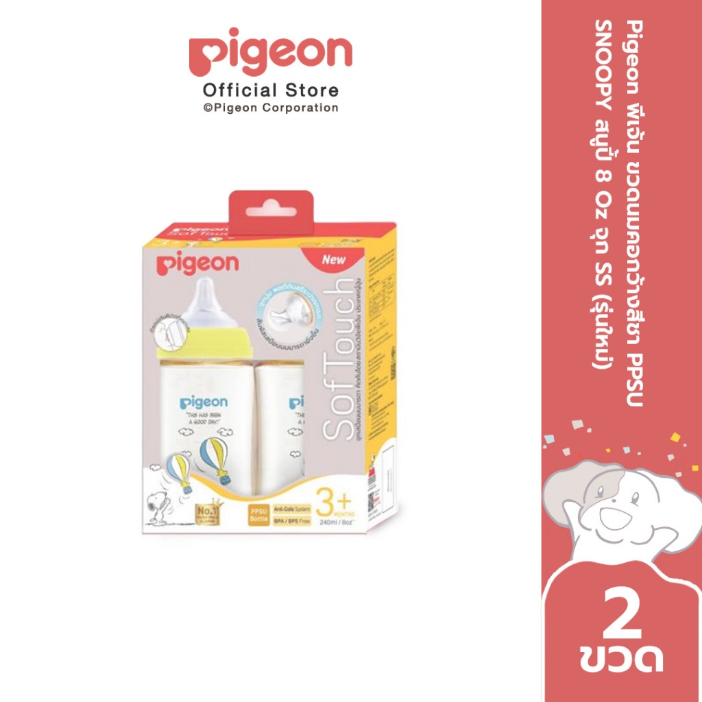 (รุ่นใหม่)Pigeon พีเจ้น ขวดนมPPSUสนูปี้160มล.จุกซอฟทัชSS และ 240 มล.จุกซอฟทัช M แพ็คคู่1. ขวดนมคอกว้างสีชา ลายใหม่ สนูปปี้ ขนาด 5 ออนซ์ แพค 2