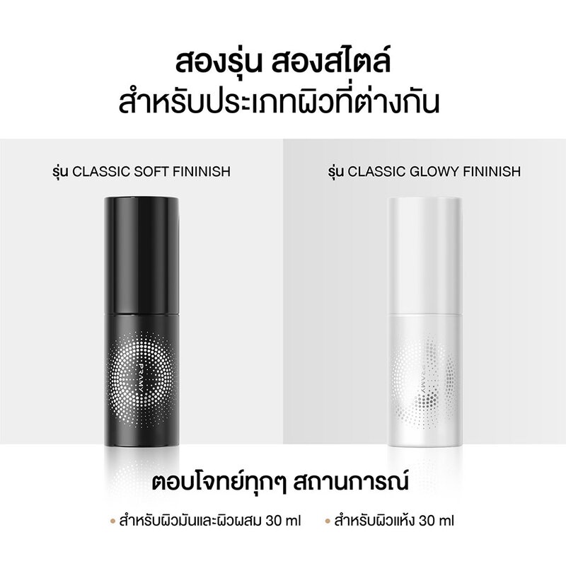 • ก่อนลงรองพื้น ให้ฉีดสเปรย์ทั่วใบหน้า 1 ชั้น