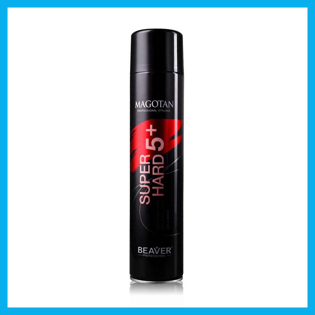 Beaver Magotan Super Hard 5+ Finishing Spray Extra Strong Control 420ml สเปรย์ฝุ่นที่ช่วยล็อคทรงผมให้อยู่ทรงได้ยาวนาน เหมาะกับการจัดแต่งทรงผมทุกประเภท ไม่เหนียวเหนอะหนะ ช่วยปกป้องเส้นผมจากความชื้น สามารถใช้หวีหรือแปรง เปลี่ยนทรงได้ โดยไม่ทิ้งคราบขุยขาว• ช่วยล็อคทรงผมให้อยู่ทรงได้ยาวนาน