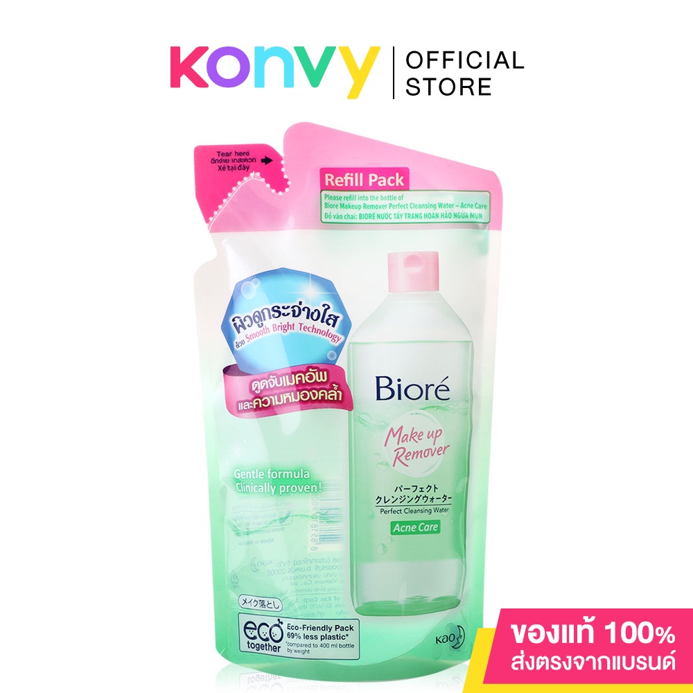 Biore Makeup Remover Perfect Cleansing Water Acne Care 250ml [Refill]คลีนซิ่งสูตรน้ำเกลือธรรมชาติ ผสานสารสกัดจากใบชิโซะมินท์ ช่วยขจัดคราบเครื่องสำอางและสิ่งสกปรกได้อย่างหมดจดอ่อนโยน ไม่ทำให้ระคายเคืองผิว ไม่ก่อให้เกิดสิวอุดตัน พร้อมลดการสะสมของแบคทีเรีย และลดปัญหาสิว• เหมาะสำหรับผิวบอบบางและเป็นสิวง่าย