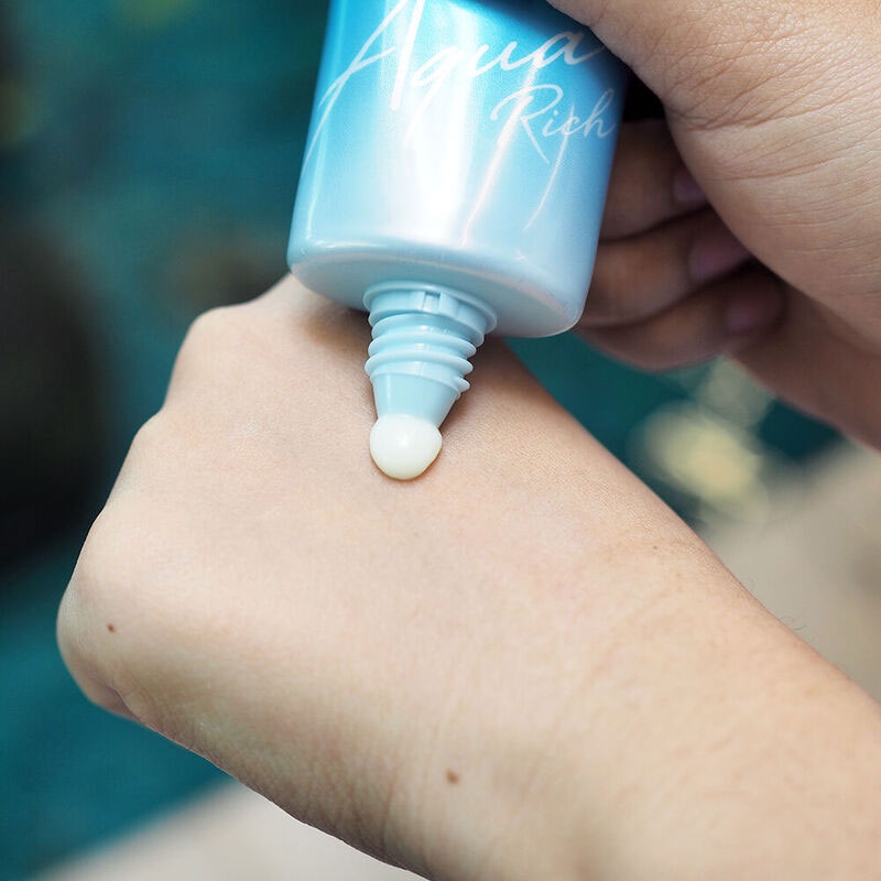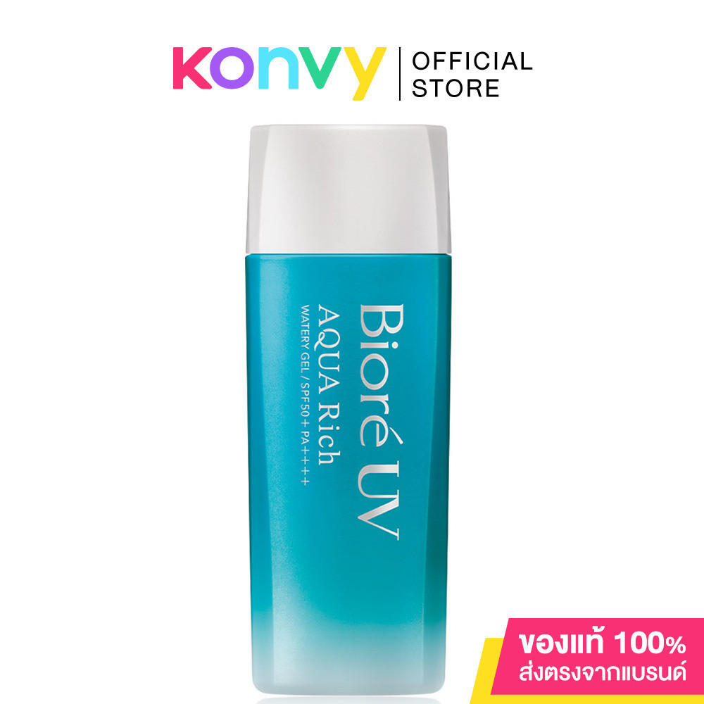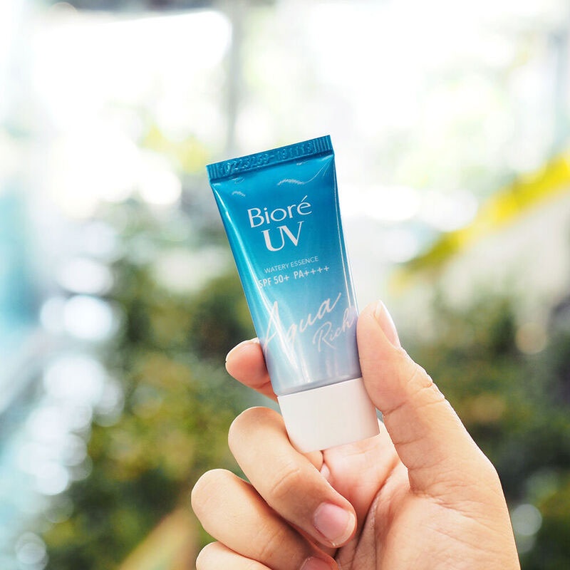 Cr: Facebook.com/BiorethailandBiore UV Aqua Rich Watery Essence SPF50+/PA++++ 15g ครีมกันแดดสำหรับผิวหน้าสุดฮิต ยอดขายอันดับ 1 ทั้งไทยและญี่ปุ่น ปกป้องผิวจากแสงแดดรังสียูวีได้อย่างมีประสิทธิภาพสูงสุด ในรูปแบรุ่นใหม่ ที่มาพร้อมเทคโนโลยี Micro Defense เอสเซนส์เนื้อบางเบา เกลี่ยง่าย ไม่เป็นคราบ ซึมซาบไว ไม่เหนอะหนะ ไม่ทำให้เมคอัพเปลี่ยนสี ช่วยกันน้ำ กันเหงื่อ ทำให้ติดทนยาวนานและลึกถึงชั้นไมโคร สามารถทาทับเมคอัพระหว่างวันได้โดยที่เมคอัพไม่ลบเลือน