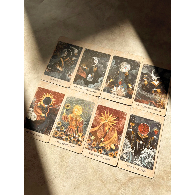 ชุดการ์ดนี้ประกอบด้วย 78 การ์ด + 8 การ์ดพิเศษของดวงอาทิตย์และดวงจันทร์ในระยะต่างๆ