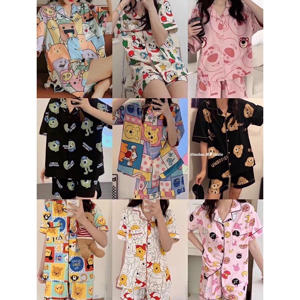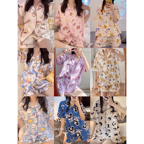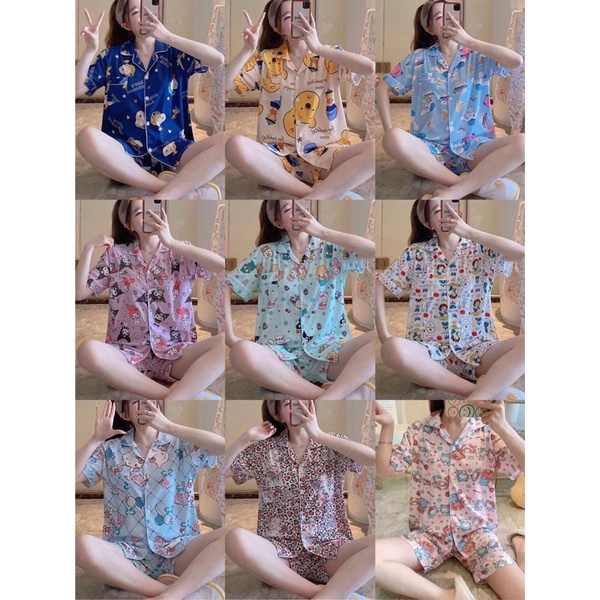 Áo ngủ lụa ý cỡ lớn đồ ngủ lụa mỏng tay dài hoạt hình ngắn tay mặc thường ngày