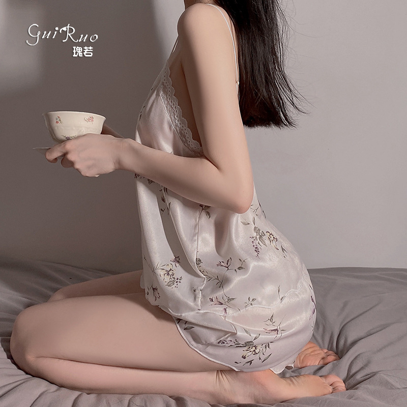 ❤️Đồ ngủ gợi cảm❤️ Váy nữ bộ đồ ngủ sa tanh gợi cảm váy nữ ngoại cỡ Váy Đầm dây mảnh 006