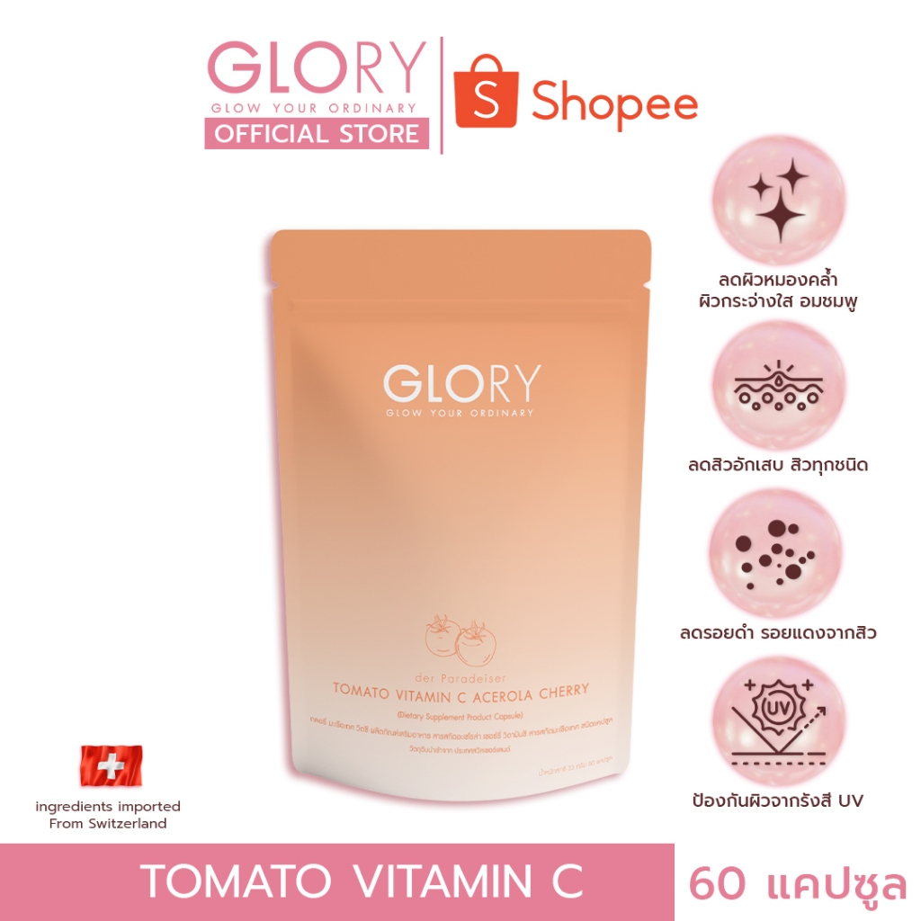 *สารสกัด COLLAGEN DI-PEPTIDE นำเข้าจากญี่ปุ่น และสารสกัด TOMATO VIT-C นำเข้าจากสวิตเซอร์แลนด์