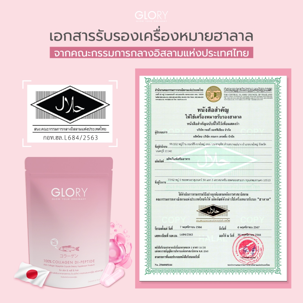 กลอรี่ คอลลาเจน (COLLAGEN DI-PEPTIDE) 60 แคปซูลเลข อย. จดแจ้ง 10-1-20960-5-0093