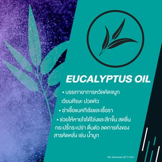 ส่วนประกอบสำคัญ : เมนทอล (Menthol) น้ำมันเปปเปอร์มิ้นท์ (Peppermint Oil) ยูคาลิปตัส (Eucalyptus) และการบูร (Camphor)