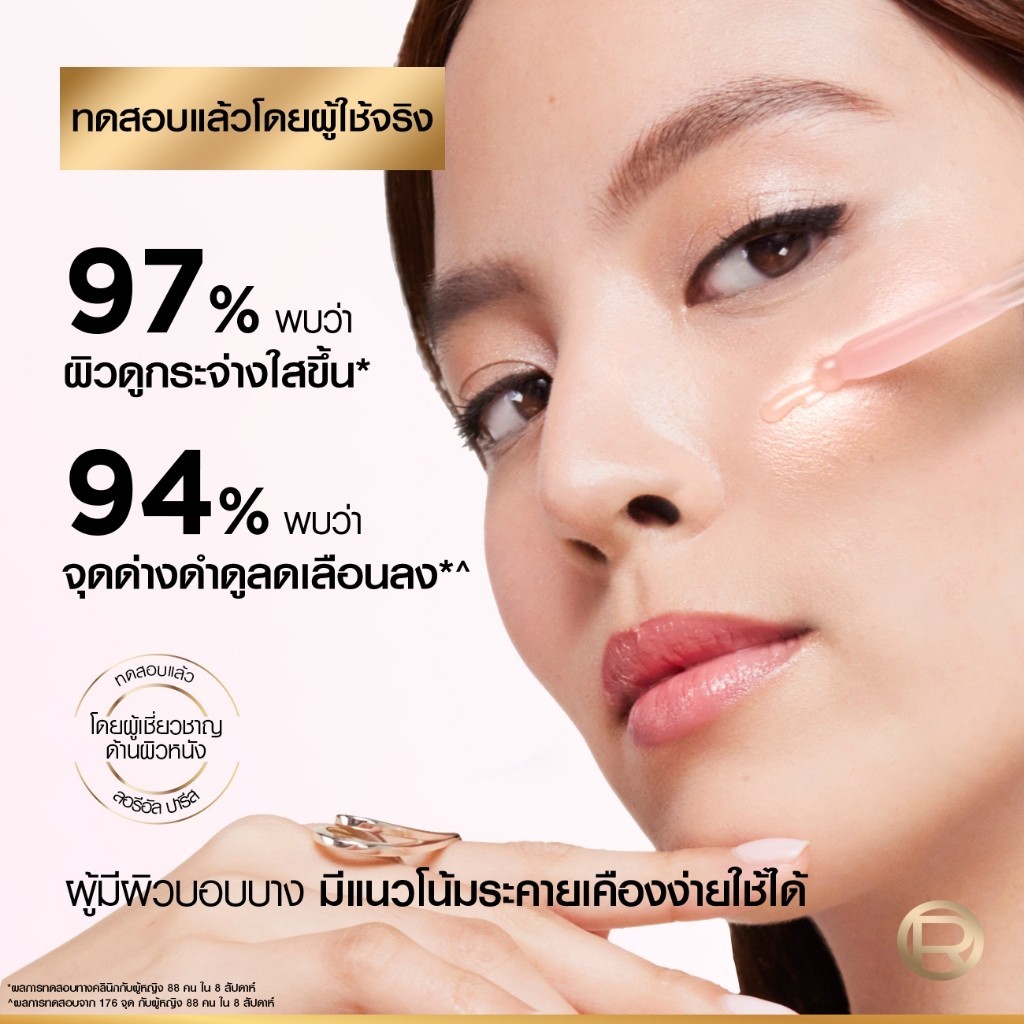 *ผลการทดสอบความพึงพอใจในอาสาสมัครจำนวน 125 ราย โดย LEAP เมื่อกันยายน - ตุลาคม 2020 + *ของลอรีอัล ปารีส ^ผิวชั้นนอก + *ผลลัพธ์ขึ้นอยู่กับแต่ละบุคคล