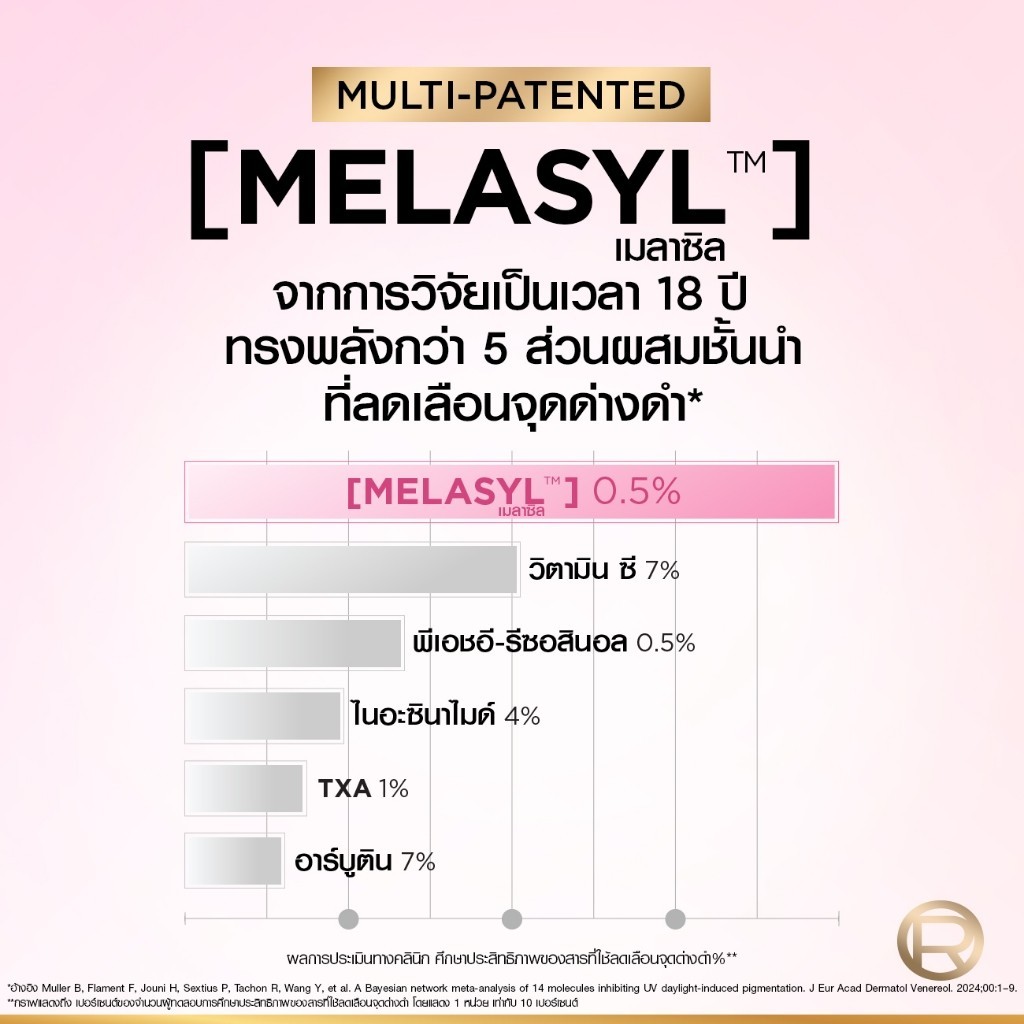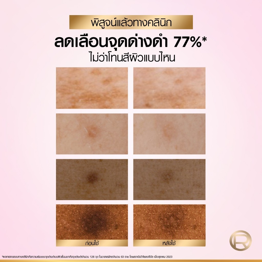 ผลลัพธ์ที่รู้สึกได้ / RESULTSทันทีที่ใช้: ผิวดูเปล่งประกาย ผิวดูชุ่มชื้นอย่างล้ำลึก^ และเปล่งประกายขึ้นอย่างเห็นได้ชัด ภายใน 2 สัปดาห์: จุดด่างดำดูลดเลือนรอยดำจากสิวดูจางลง ผิวดูเรียบเนียนสม่ำเสมอขึ้น พร้อมผิวดูกระจ่างใสขึ้นอย่างเห็นได้ชัด ผิวดูชุ่มชื้นอย่างล้ำลึก^ และเปล่งประกายขึ้นอย่างเห็นได้ชัด เมื่อใช้เป็นประจำอย่างต่อเนื่อง: จุดด่างดำดูลดเลือน