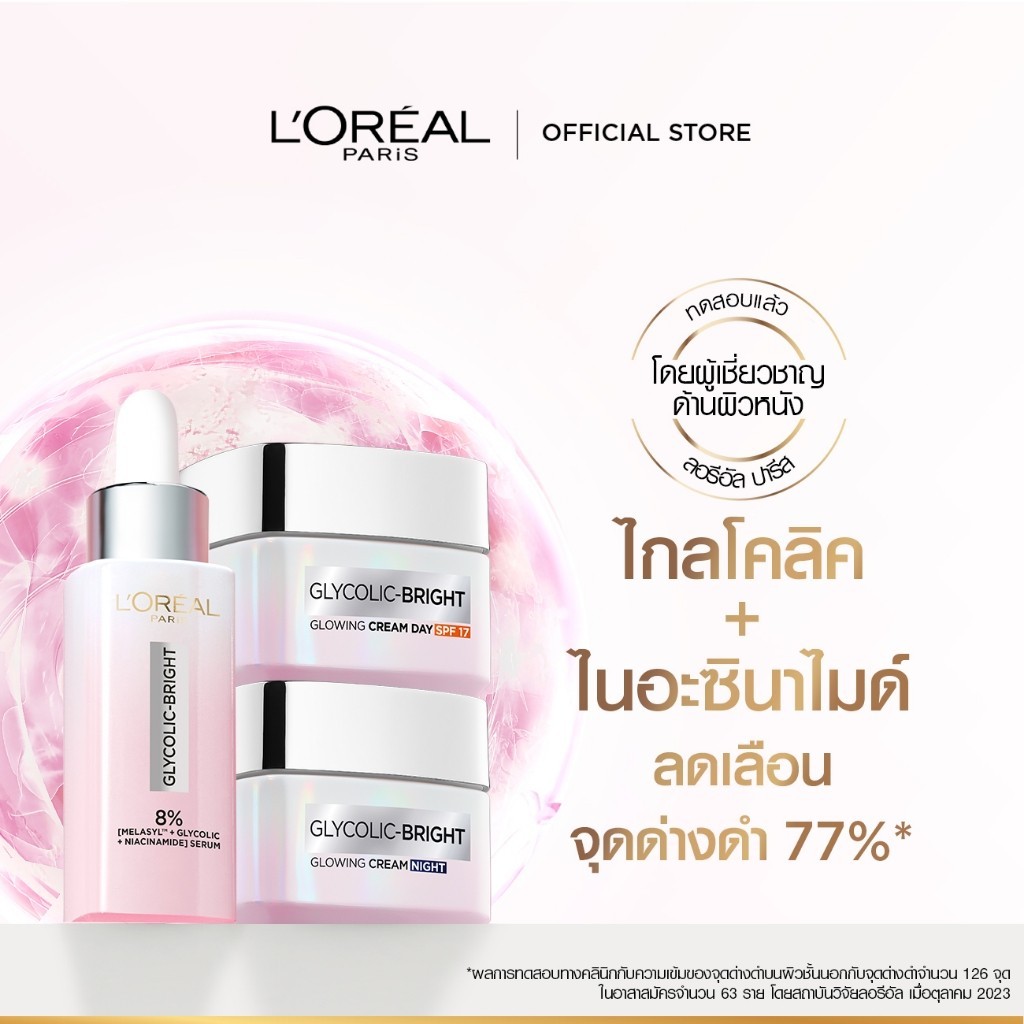 รายละเอียดผลิตภัณฑ์ / PRODUCT DESCRIPTIONสถาบันวิจัย ลอรีอัล ปารีส คิดค้นพัฒนานวัตกรรมเพื่อผิวดูโกลว์ และกระจ่างใสขึ้น ด้วยพลัง ไกลโคลิค แอซิด พิสูจน์แล้วด้วยผลลัพท์ทางคลินิกผิวดูกระจ่างใสขึ้น จุดด่างดำดูลดเลือน ทดสอบแล้วโดยผู้เชียวชาญด้านผิวหนัง