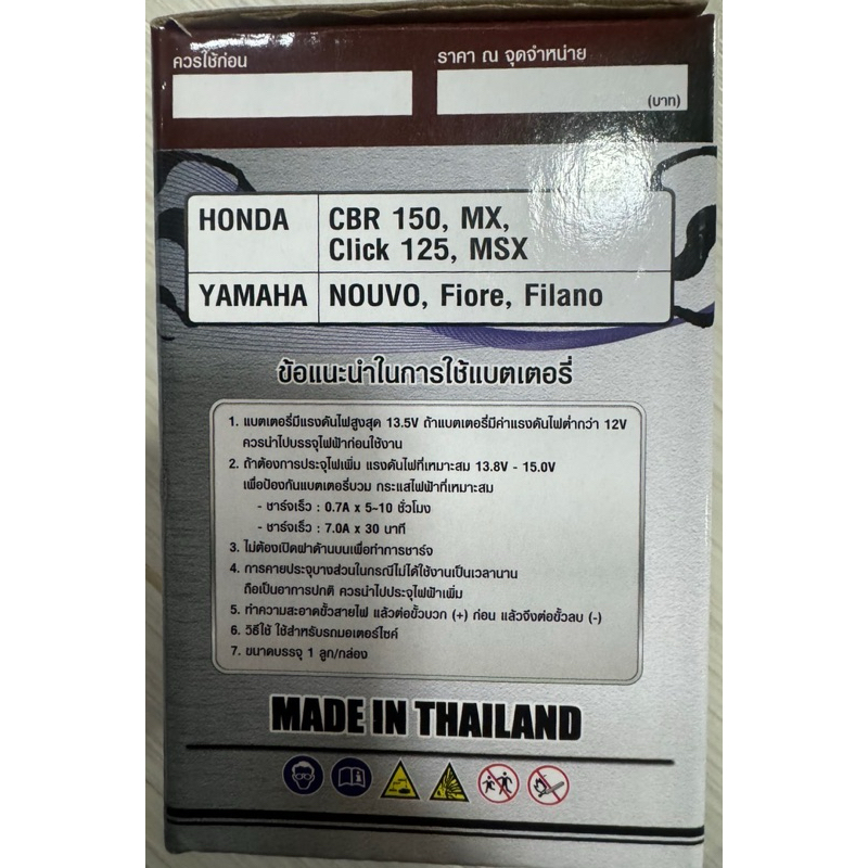 Pin sản xuất tại Thái Lan chang (chang) cho xe máy cỡ 7*11.3*8.5 cm!! Pin mới không còn hàng.