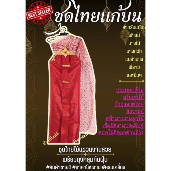 📍📍ชุดไทยใส่โครงไม้แขวน เพื่อให้สามารถนำไปแขวนแก้บนได้โดยไม่หลุดร่วง ทางร้านจึงจำเป็นต้องยึดชุดติดกับไม้แขวนด้วยกาว เพื่อให้สามารถนำไปแขวนถวายแก้บนได้
