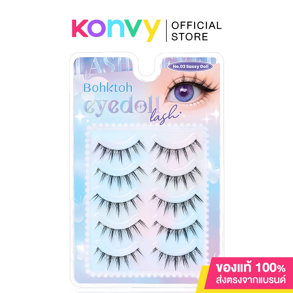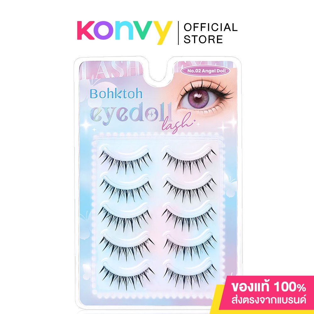 Cr.facebook.com/BohktohThailandBohktoh Eyedoll Lash 5 Pairs #No.01 Baby Doll ขนตาปลอมไอดอลสาวแบบสาววัยใส ตัวอ่อนที่กำลังจะผลิบานเป็นไอดอลตัวแม่ มาพร้อมกับการจับช่อสลับสั้น-ยาว ระดับ 5mm/ 8mm/ 12mm/ 8mm/ 5mm แกนเอ็น ใส นิ่ม และเบาสบายตา วิ้งค์ให้ดวงตาดูสดใส และโตขึ้น สามารถติดได้ทุกวัน