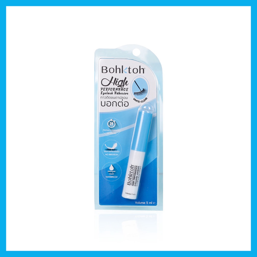 Cr.facebook.com/BohktohThailandBohktoh High Performance Eyelashes Adhesive 5ml กาวติดขนตาปลอม ติดทนนานตลอดวัน 24 ชั่วโมง กันน้ำ กันเหงื่อ ไม่ระคายเคืองผ่านการทดสอบจากผู้ใช้จริงว่า ปลอดภัยและมีคุณภาพ จากสถาบันศูนย์วิจัย Derm Scan Asia