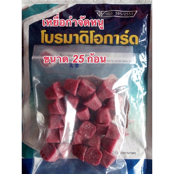 สารสำคัญ : Bromadiolone 0.005% W/W Wax blockผลิตภัณฑ์กำจัดหนู : แบบเหยื่อพิษสำเร็จรูปชนิดก้อน ใช้งานง่ายและสะดวก สามารถใช้กำจัดหนูที่อาศัยตามบ้านเรือน โรงพยาบาล โรงงาน เป็นเหยื่อที่มีกลิ่นที่หนูชอบ