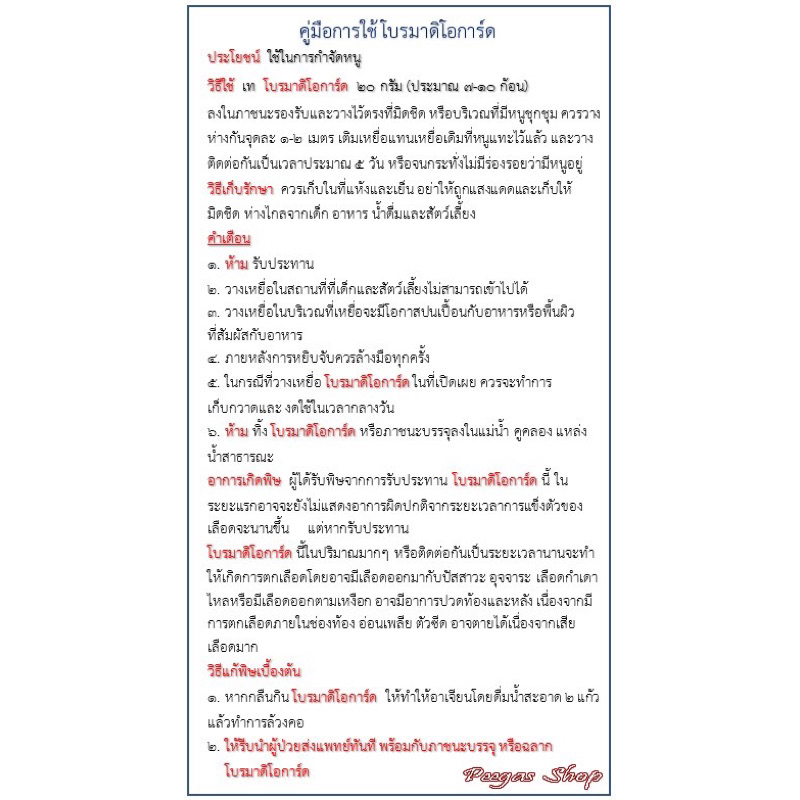 5. ในกรณีที่วางเหยื่อ โบรมาดิโอการ์ด ในที่เปิดเผย ควรจะทำการเก็บกวาดและงดใช้ในเวลากลางวัน