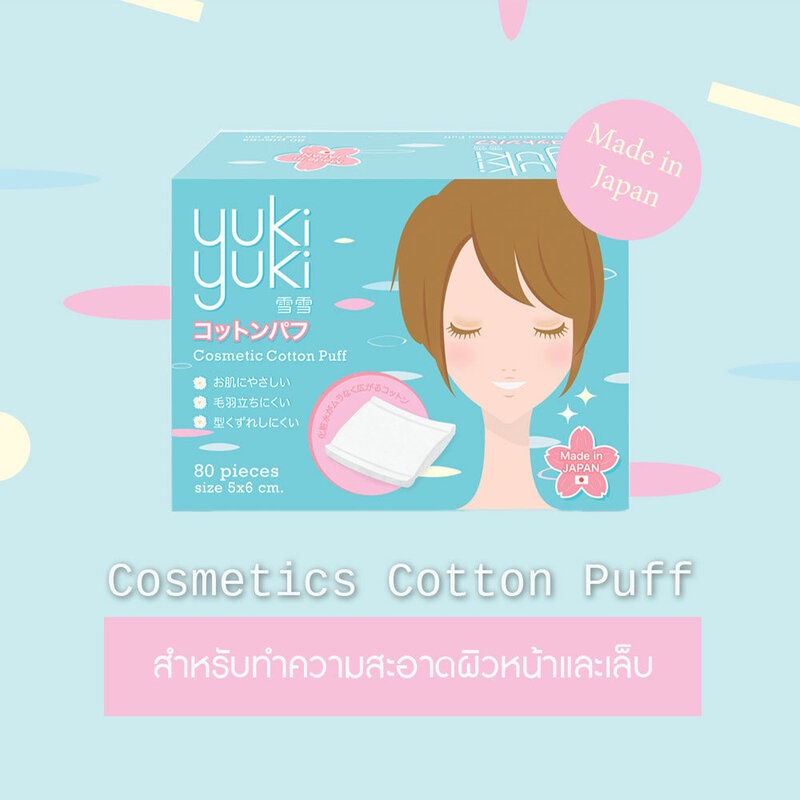 [แพ็คคู่] Yuki Yuki Cotton Puff 80pcsสำลีแผ่นรีดขอบผลิตในประเทศญี่ปุ่น สำหรับเช็ดทำความสะอาดผิวหน้าและเล็บ สำลีแผ่นเนื้อนุ่ม เหนียว ไม่ย้วยง่าย และไม่เป็นขุย มีคุณสมบัติพิเศษในการกระจายโลชั่นน้ำได้ดี• สำลีแผ่นเนื้อนุ่ม มอบสัมผัสอ่อนโยนสู่ผิว