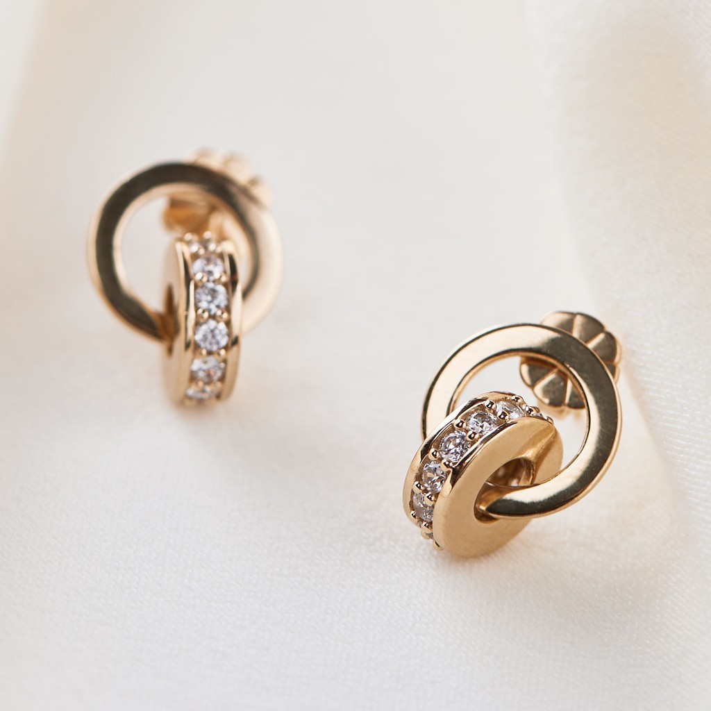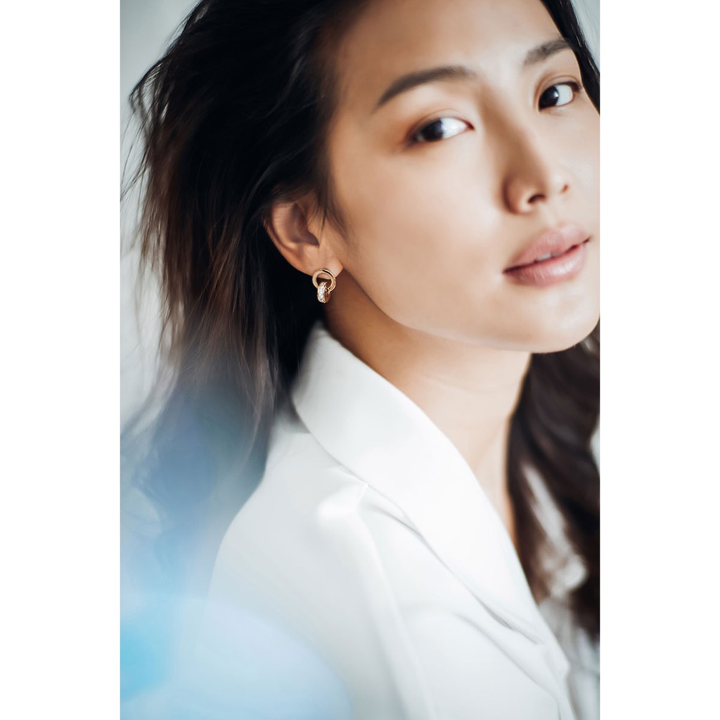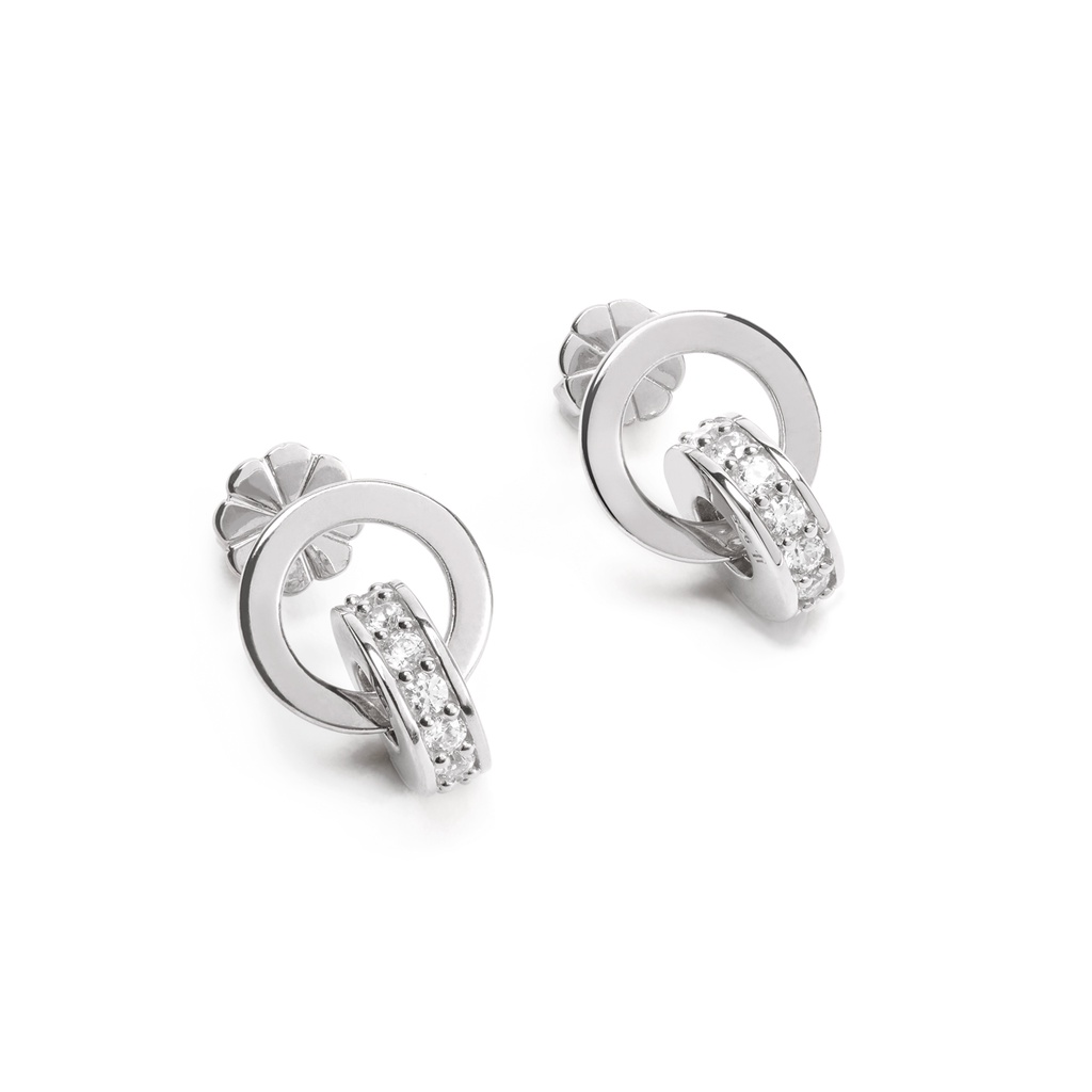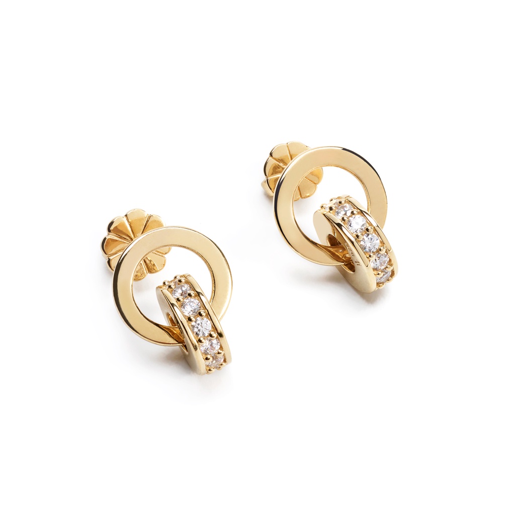 ต่างหู Kylieดีไซน์คลาสสิค Luxury มีลักษณะห่วงคล้องกัน 2 ชิ้น โดดเด่นด้วยห่วงชิ้นด้านล่างที่มีการประดับด้วยพลอย CZ ขนาด 2.00 mm.จำนวนถึง 26 เม็ด ตัวเรือนผลิตจาก Sterling silver 925 ใส่เป็นสไตล์ everyday look หรือใส่ออกงานก็ได้เช่นเดียวกัน