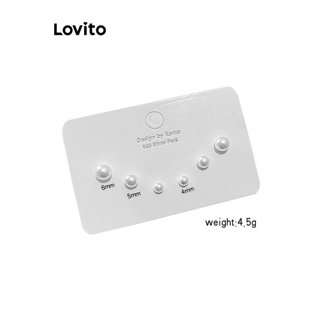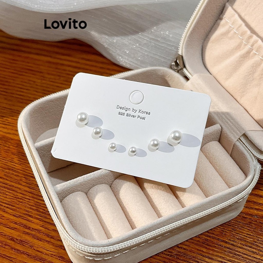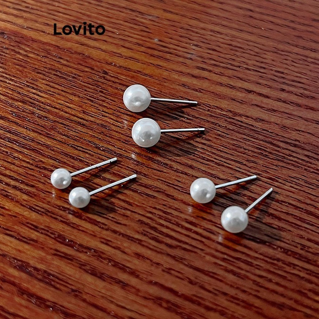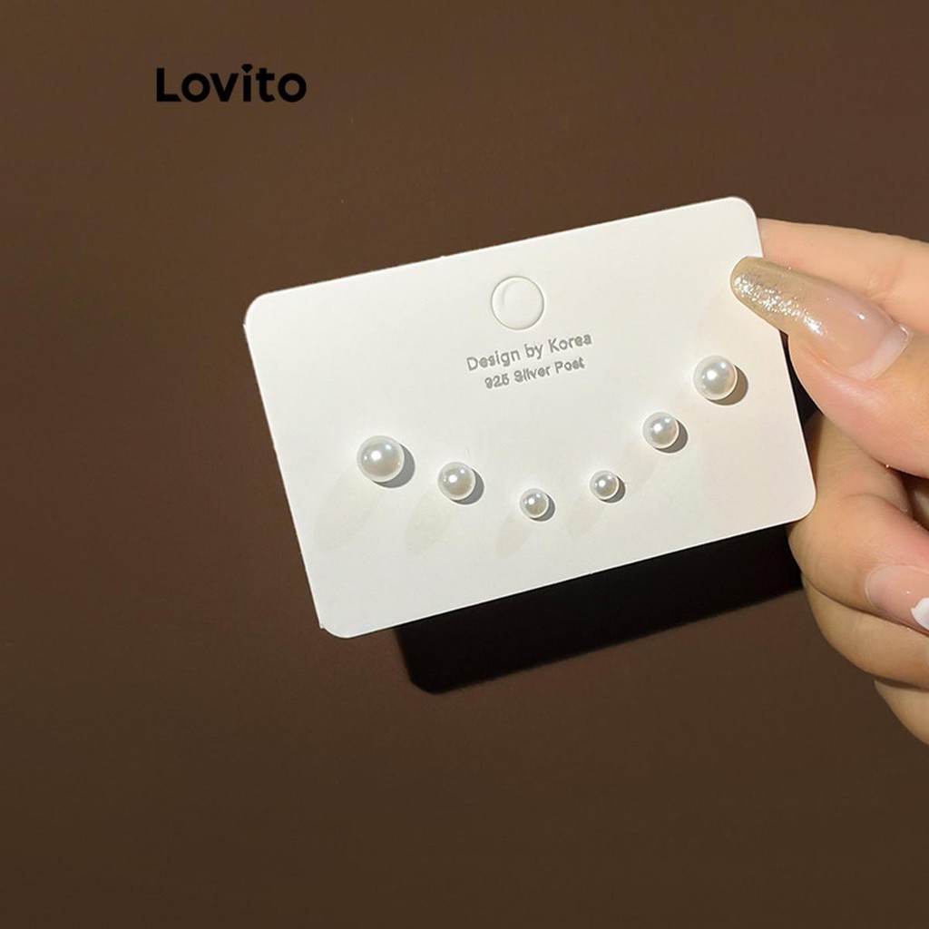 Lovito Bông Tai Nữ 6 bông tai ngọc trai hoa nơ màu trơn thanh lịch lfa16236