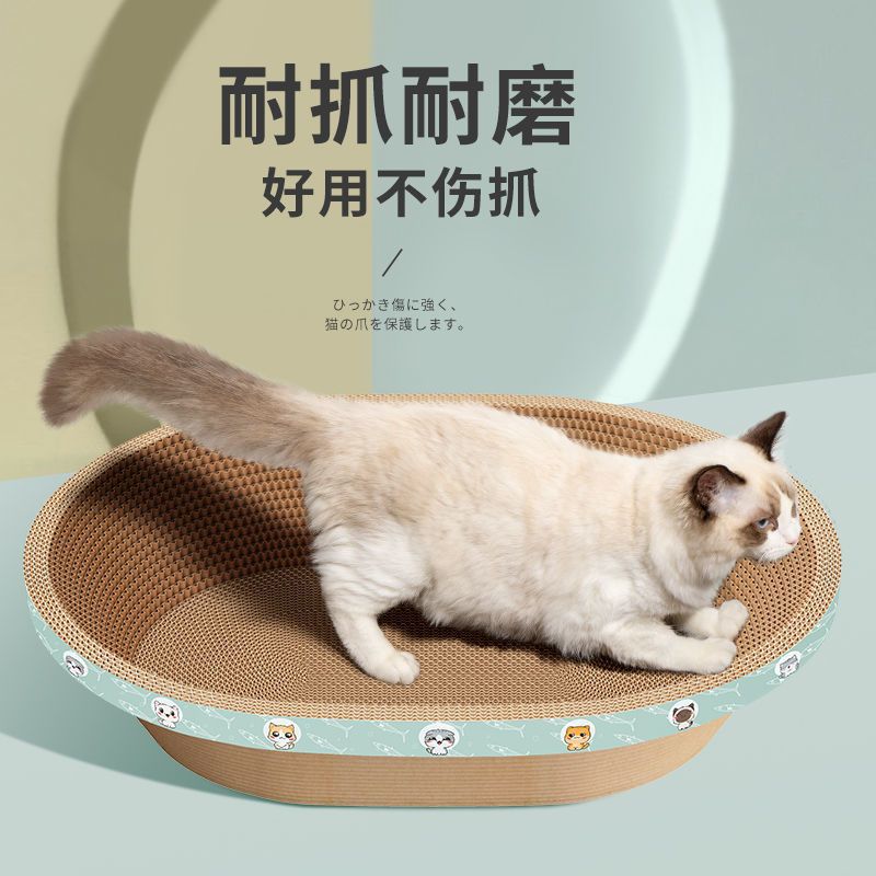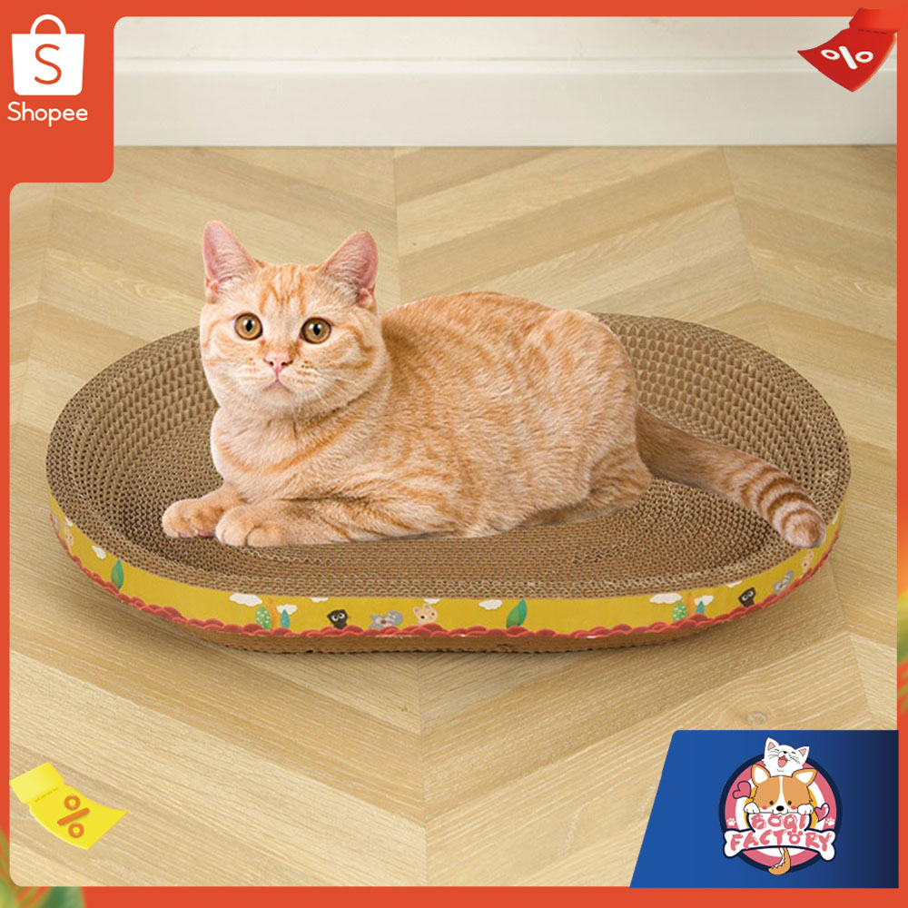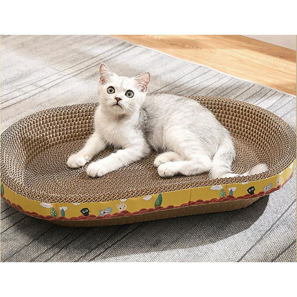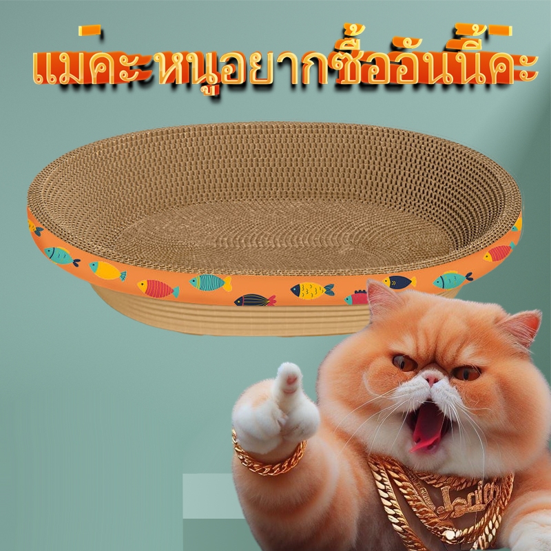 ที่ฝนเล็บรูปอ่าง เป็นที่นอนน้องแมวไปในตัวผลิตจากกระดาษลูกฟูกคุณภาพดี หนา แข็งแรง รองรับการลับเล็บของน้องได้ดี