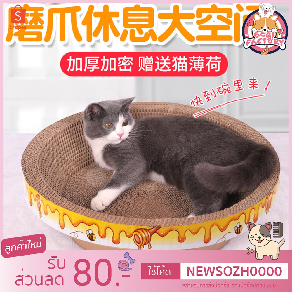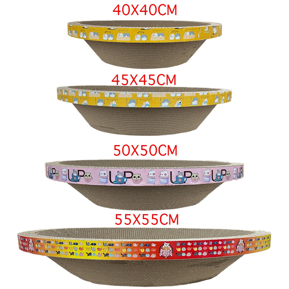 ที่ฝนเล็บรูปอ่าง เป็นที่นอนน้องแมวไปในตัวผลิตจากกระดาษลูกฟูกคุณภาพดี หนา แข็งแรง รองรับการลับเล็บของน้องได้ดี