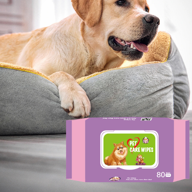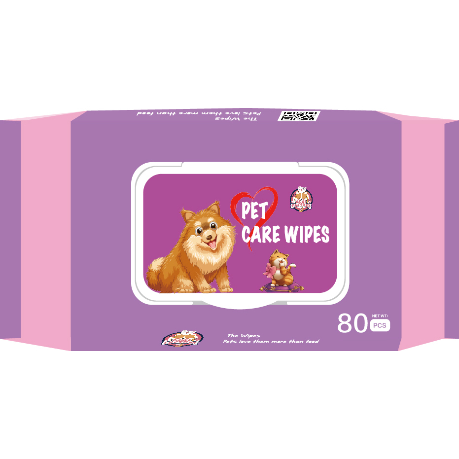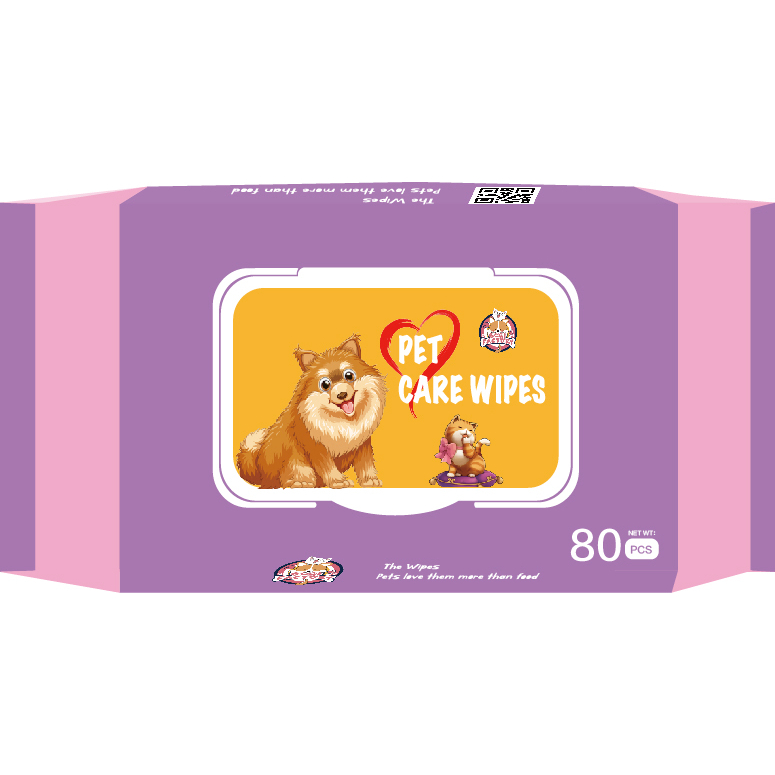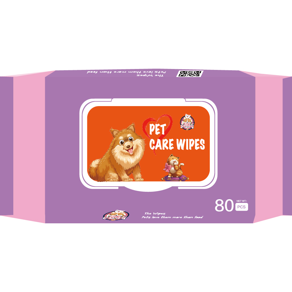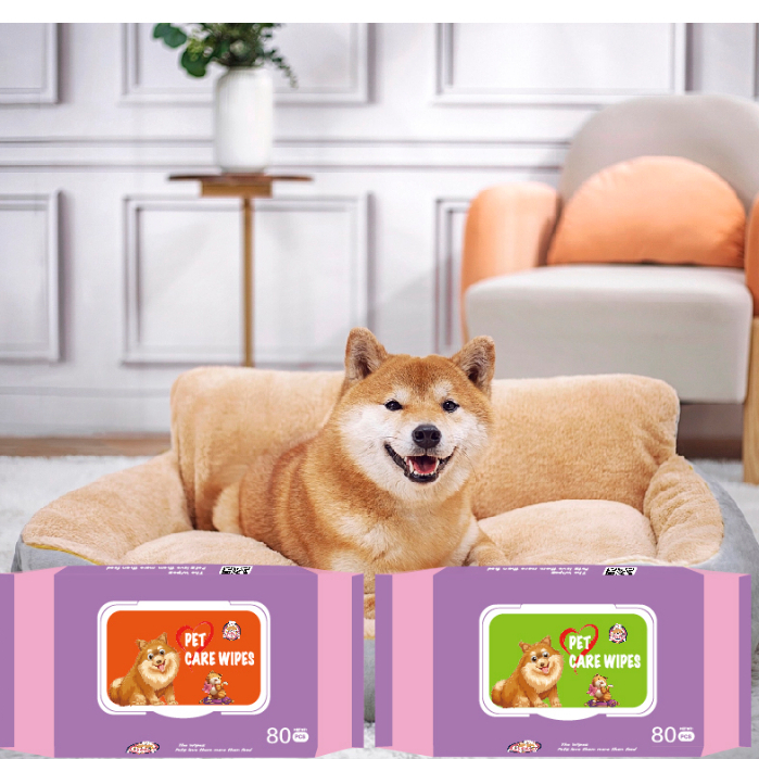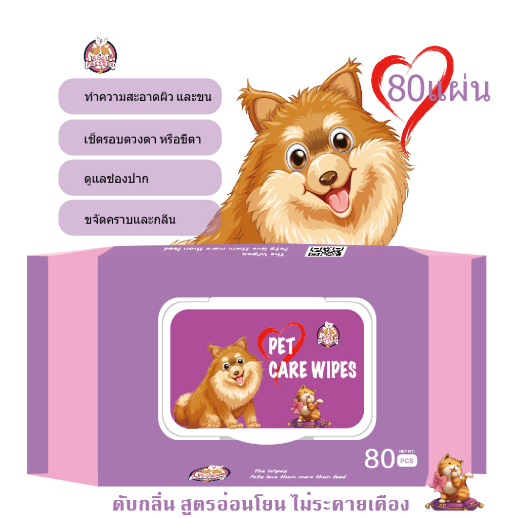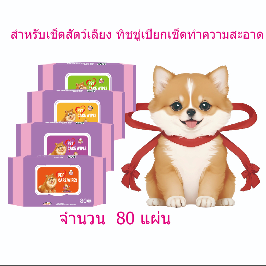 ผ้าเปียกทำความสะอาดสัตว์เลี้ยง 80แผ่นเหมาะกับผิวแพ้ง่าย ไม่มีส่วนผสมของน้ำหอม