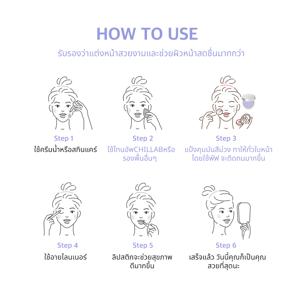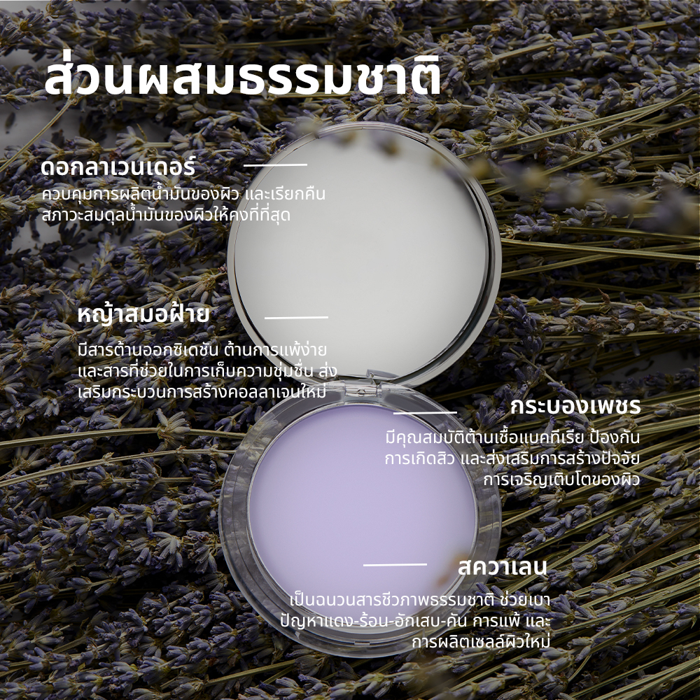 CHILLAB แป้งสีม่วงคุมมันแป้งไร้แป้ง (เทคโนโลยีใหม่ควบคุมความมันสองเท่า) - พร้อมเสนอผลลัพธ์ที่ไม่มีความผงฝุ่น นวัตกรรมไร้แป้งไร้แฝุ่น แต่คุมมันได้ดี📍 ลักษณะและประโยชน์📍