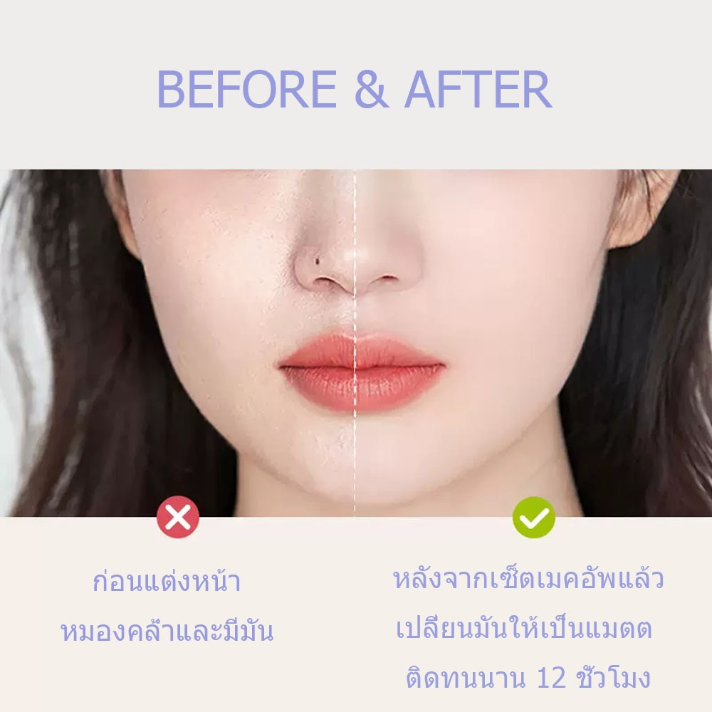 - การควบคุมน้ำมันแบบคู่: ใช้เทคโนโลยี CHILLAB ใหม่อันเป็นเอกลักษณ์เพื่อให้ได้ผลการควบคุมน้ำมันที่ยอดเยี่ยม ช่วยให้การแต่งหน้าของคุณดูสดใส อ่อนเยาว์ และเป็นธรรมชาติได้ยาวนาน