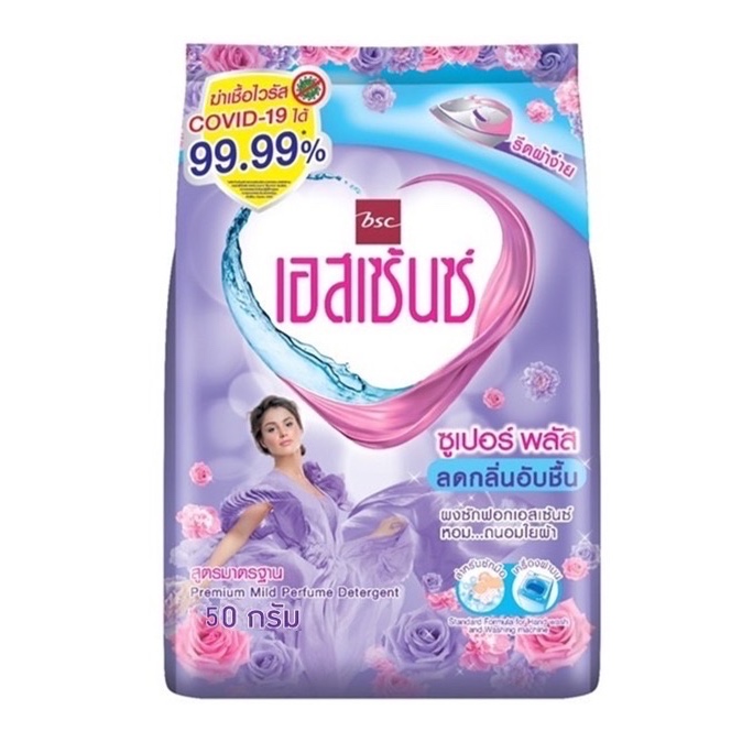 ผงซักฟอก essence 50g 3 สูตร หอมมาก ลดกลิ่นอับชื้น รีดผ้าง่าย