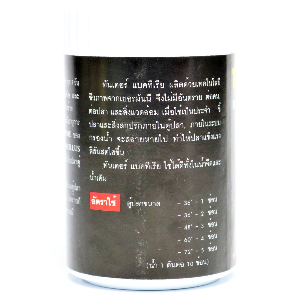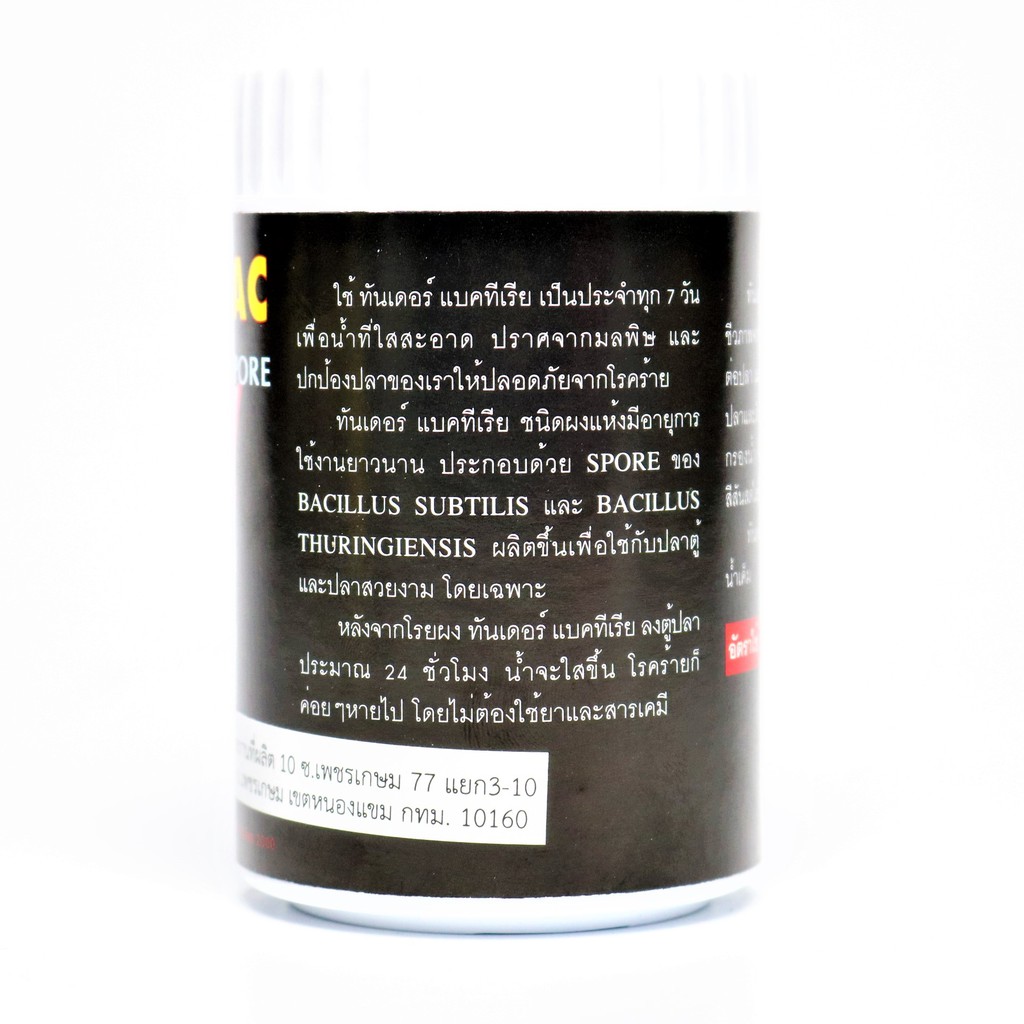 แบคทีเรียชนิดผงประกอบไปด้วย สปอร์ของ Bacillus Subtilis และ Bacillus Thuringiensis ช่วยกำจัดของเสียและย่อยสลายของเสียภายในตู้ และบ่อปลา ทำให้น้ำใสสะอาด