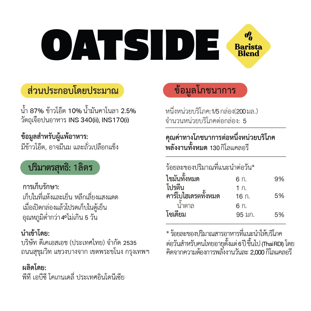 - ไม่แต่งสี และ กลิ่น หอมจากข้าวโอ๊ตคั่ว