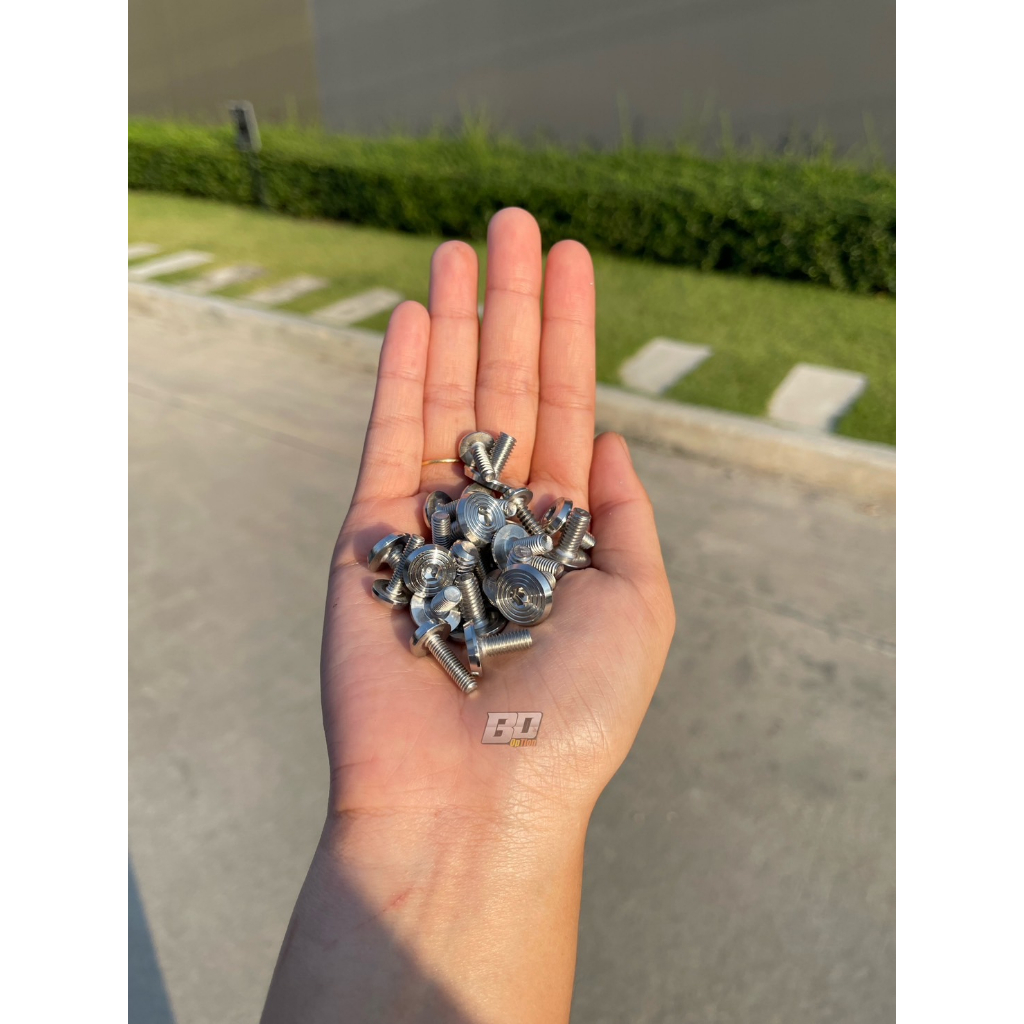-น๊อตเลสเวฟ น๊อตชุดสีเวฟสแตนเลสแท้-งานเฮงสกรู งานHeng CNC หัวแบนจี้ลาย