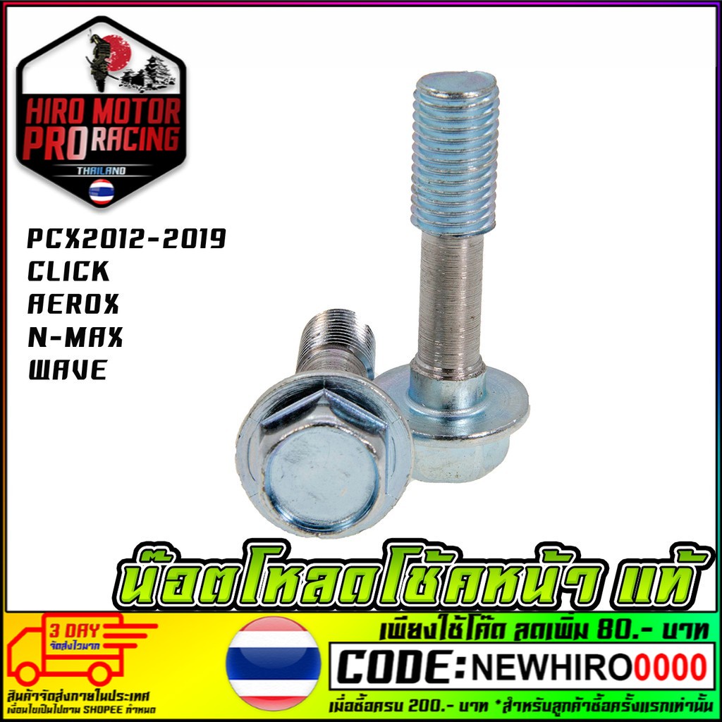 น๊อตโหลดโช้คหน้า PCX 2012-2019 CLICK ทุกรุ่น AEROX N-MAX WAVE น๊อต HONDAสินค้าคุณภาพคัดสรรมาเป็นอย่างดี ผลิตจากโรงงานภายในประเทศไทยและจัดจำหน่ายในประเทศไทย ทางร้านมีความน่าเชื่อถือ จัดส่งสินค้าจริง และจัดส่งสินค้าไวภายใน 2 วัน และเราเป็นร้านค้าแนะนำที่ทาง Shopee ได้กะรันตรีความน่าเชื่อถือของทางร้าน