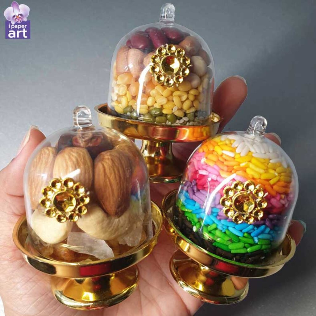 - โดม S จำนวน 3 พาน ขนาดรวมพาน 7 x 5 x 5 เซนติเมตร (แพคเกจจิ้งสำเร็จมีพานในตัว)