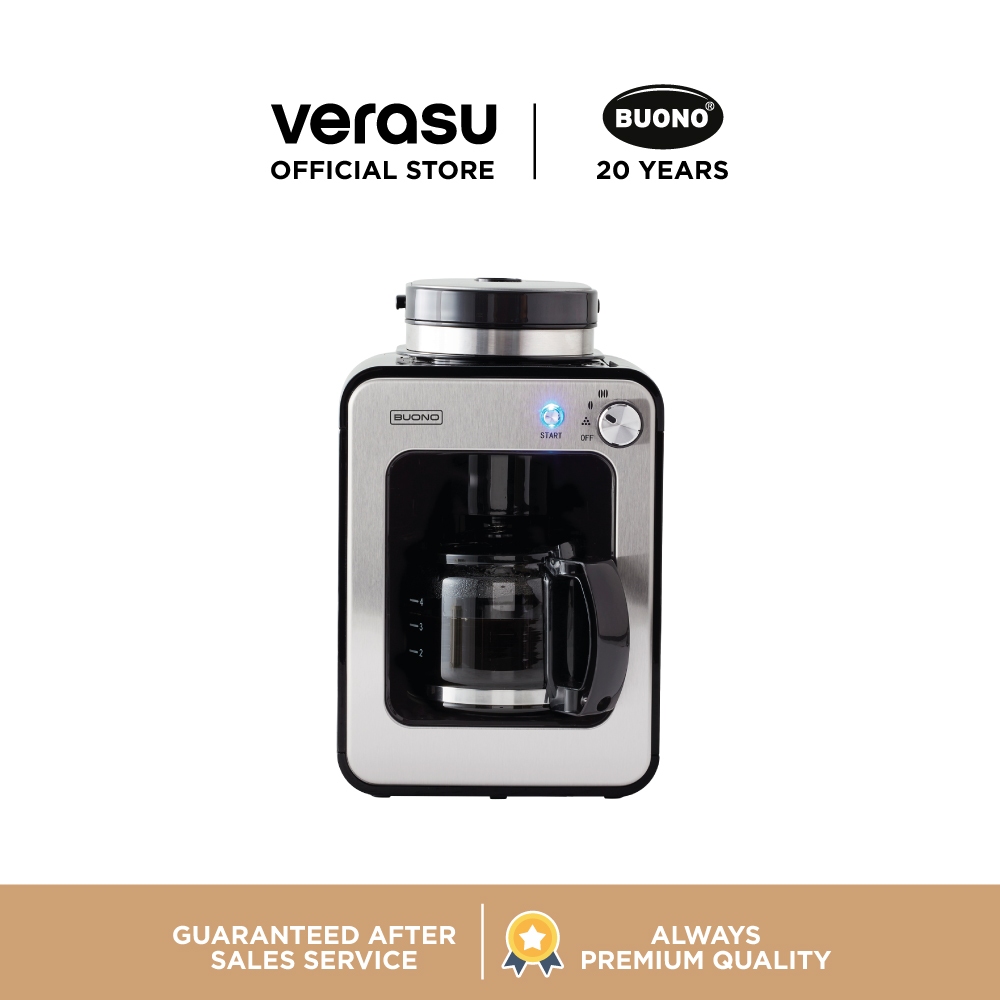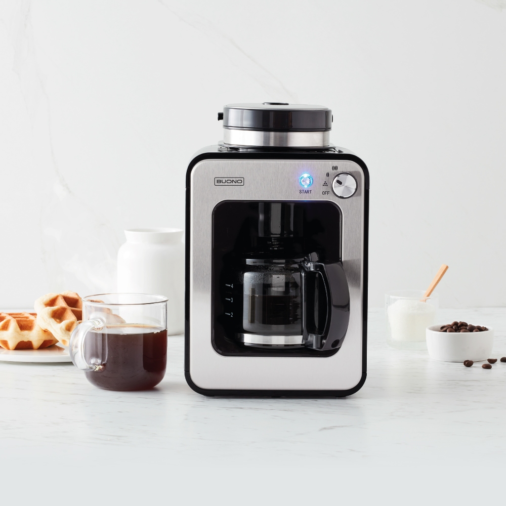 BUONO เครื่องชงกาแฟดริปมีเครื่องบดในตัว สำหรับ 4 ถ้วย รุ่น BUO-326861BUONO เครื่องชงกาแฟดริปมีเครื่องบดในตัว สำหรับ 4 ถ้วย ชงกาแฟสดใหม่เพื่อเริ่มต้นวันที่ดีของคุณ ตัวเครื่องขนาดเล็ก กะทัดรัด ประหยัดพื้นที่ ใช้งานง่าย เพียงหมุนเลือกระดับกาแฟที่ต้องการ แล้วกด Start คุณก็จะได้ดื่มด่ำกาแฟแก้วโปรดของคุณทุกเมื่อที่ปรารถนา
