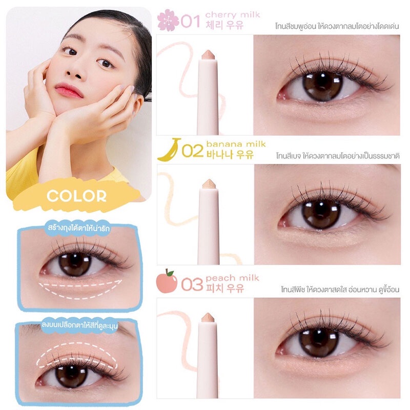 • ให้ฟินิชการสร้างถุงใต้ตตาที่สว่างและเป็นสีพาสเทลสดใส