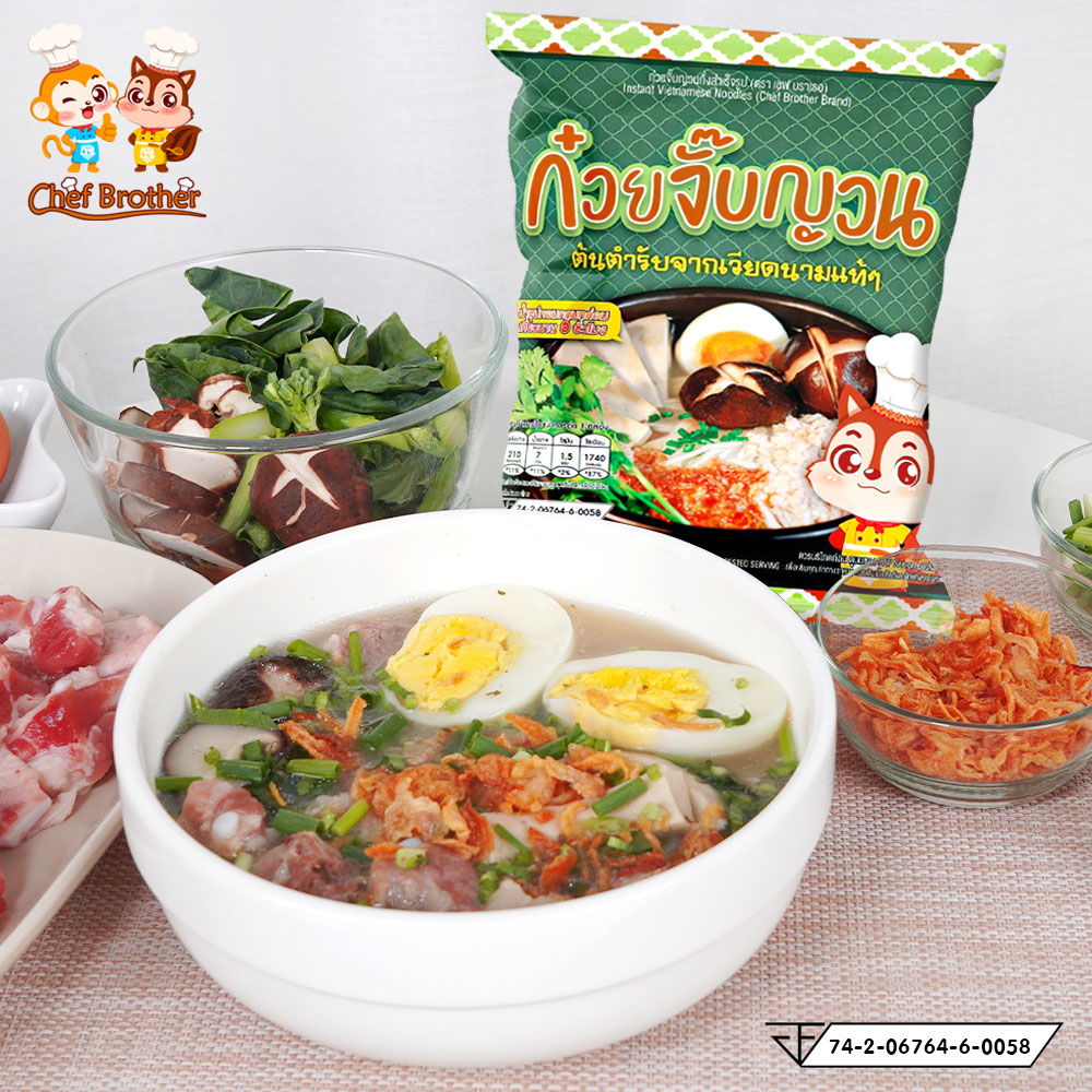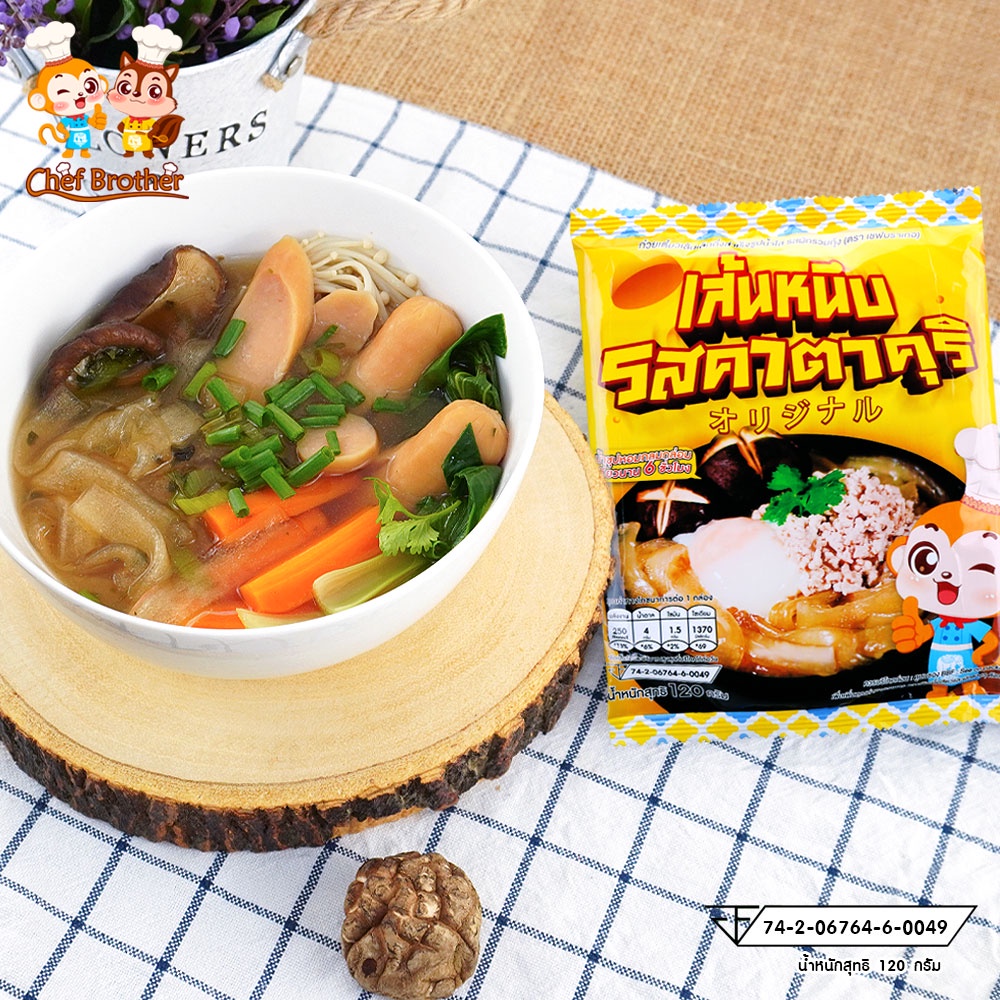 Chef Brother เส้นหนึบรสคาตาคุริ (เส้นมันสำปะหลัง) สุดเหนียวนุ่ม น้ำซุปหอมกลมกล่อมใช้เวลาเคี่ยวนานกว่า 6 ชั่วโมง จนได้น้ำซุปที่หอมอร่อยถูกปาก คลุงเคล้าด้วยเครื่องปรุง สุดพิเศษ อร่อยได้ทันที